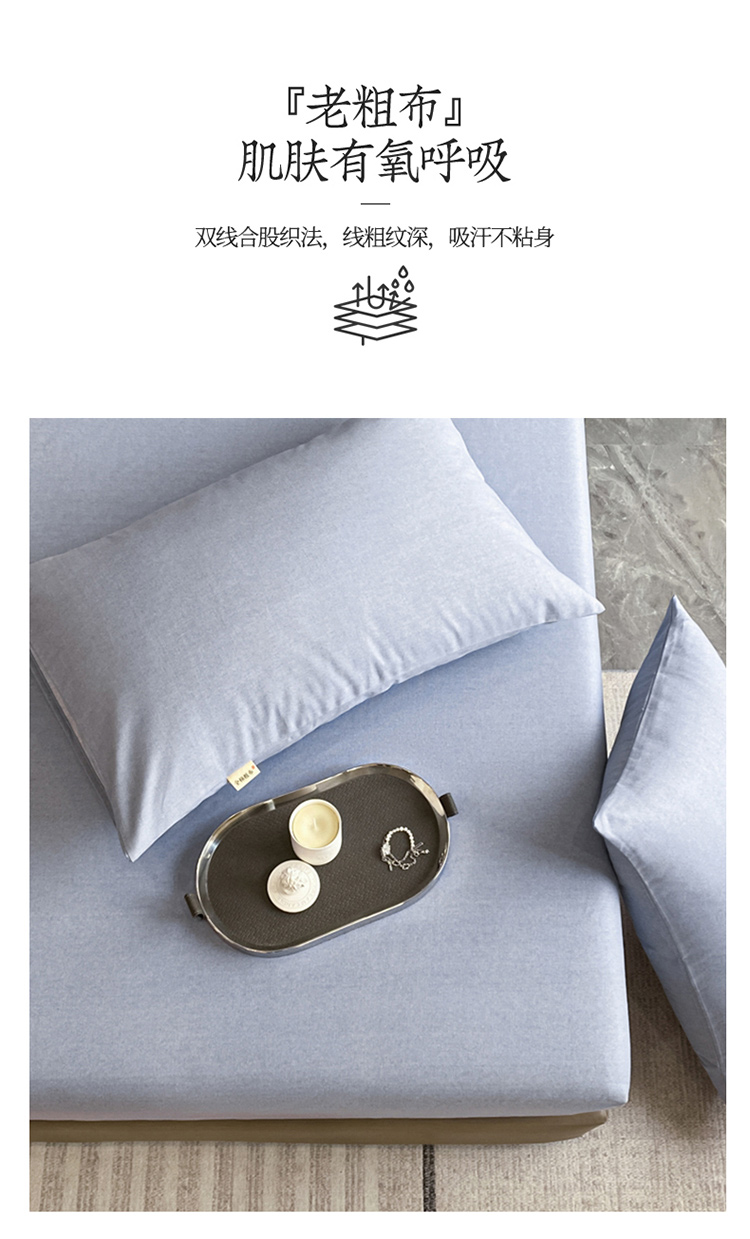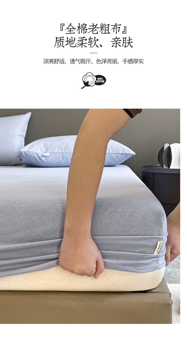 商品名称:卧趣家纺 2023新款全棉老粗布单品系列单床笠 月白-兰