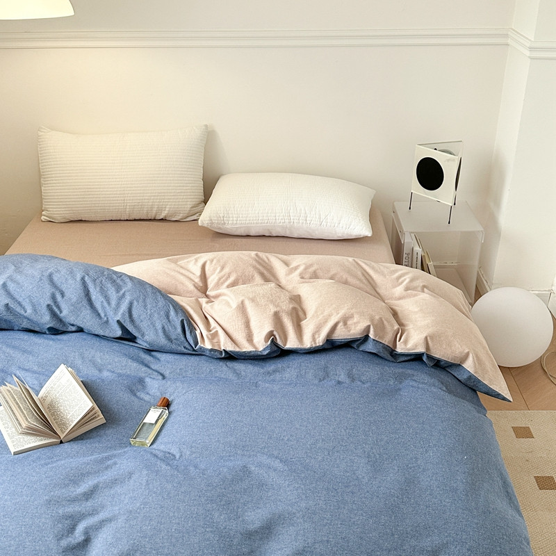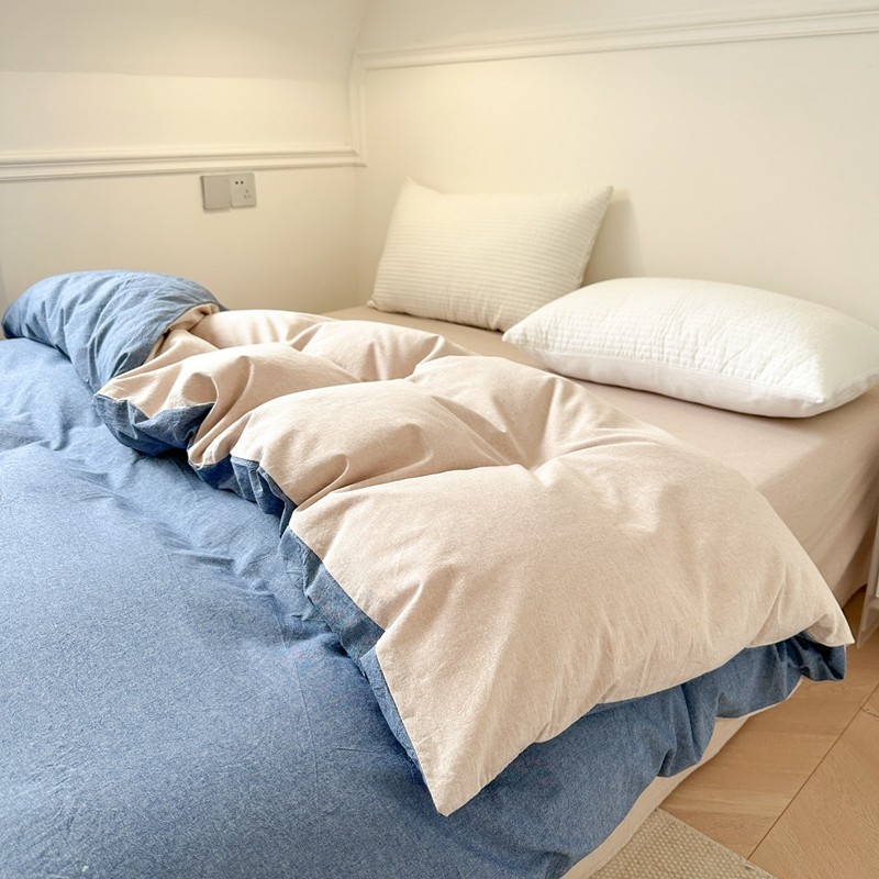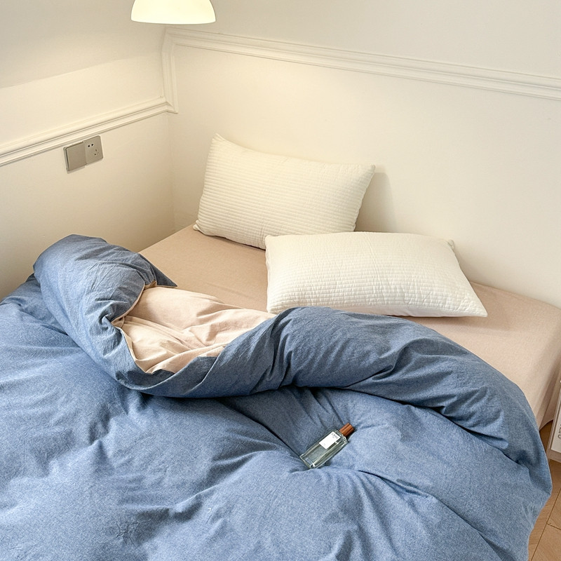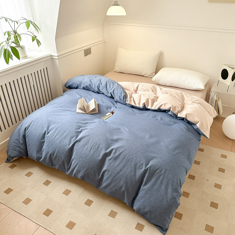 商品名称:嘉汀兰 2023新款全棉色织水洗棉纯色撞色款单被套 梦中蓝玫瑰