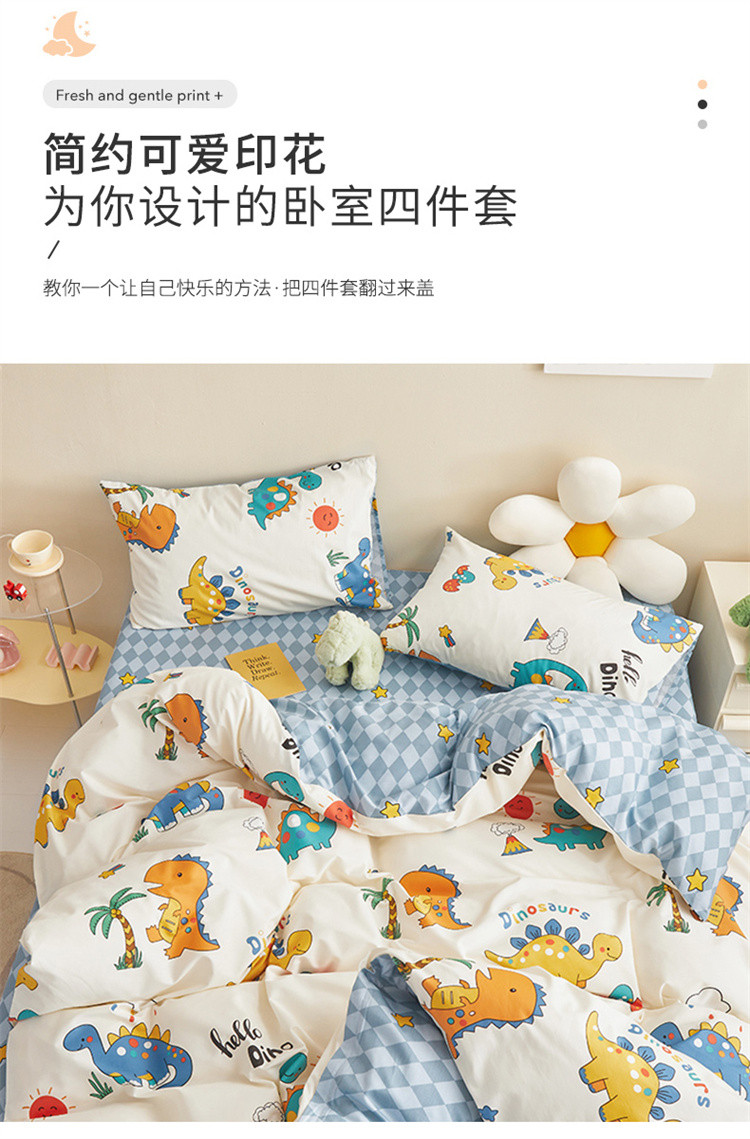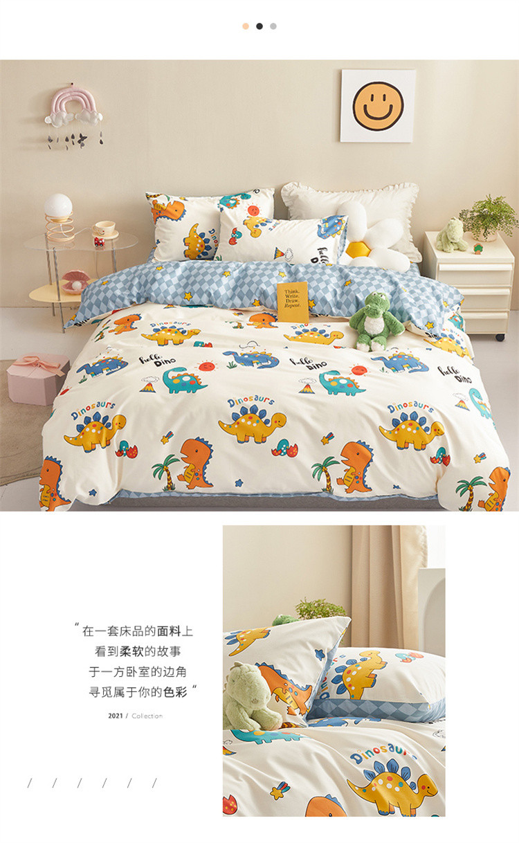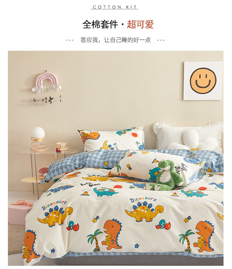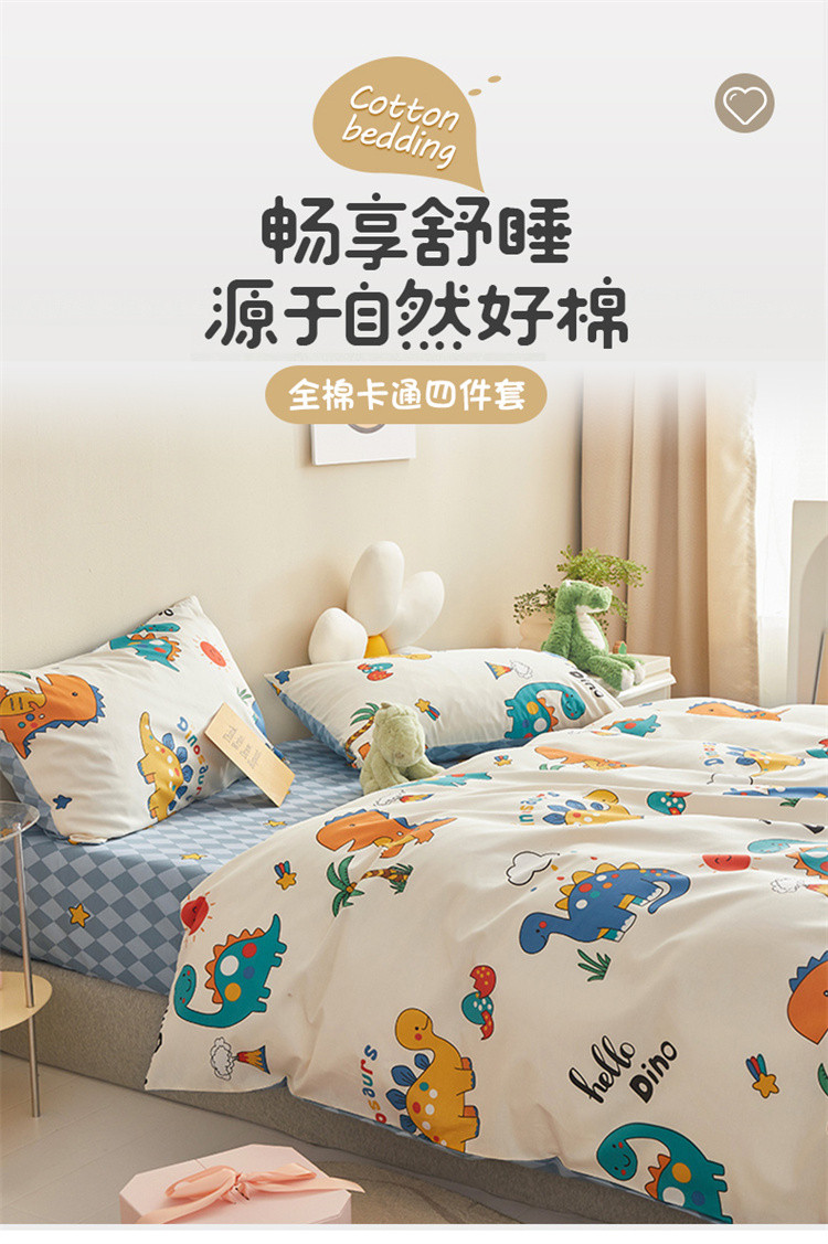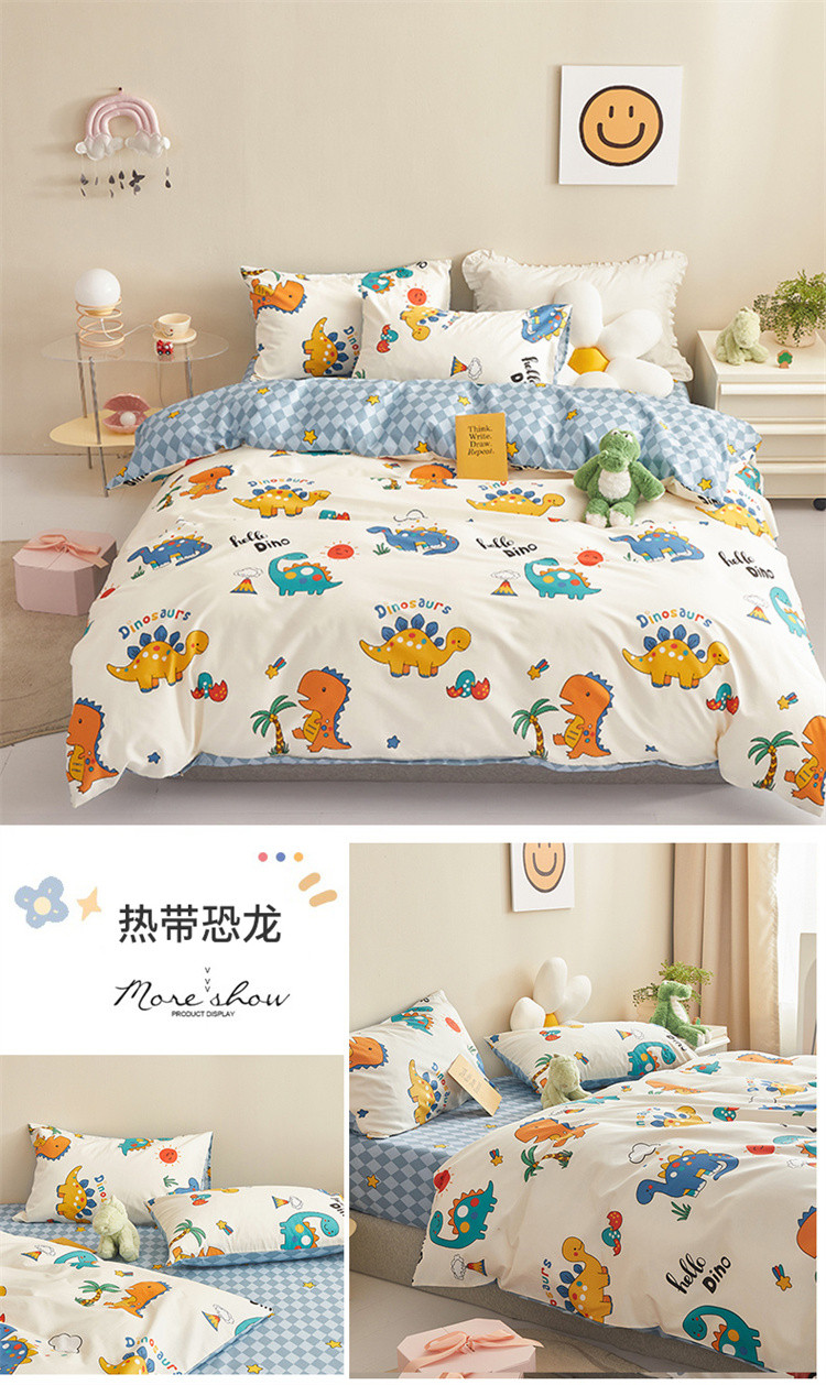 商品名称:绫韵家纺 2023新款初春全棉可爱童心童趣纯棉系列四件套 热带恐龙