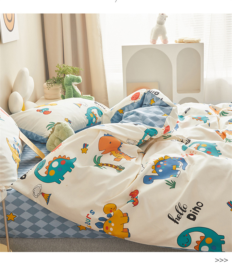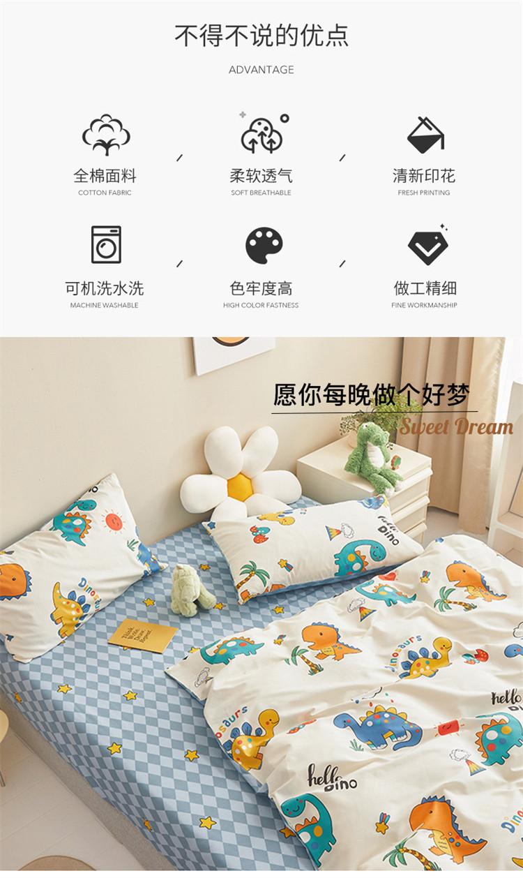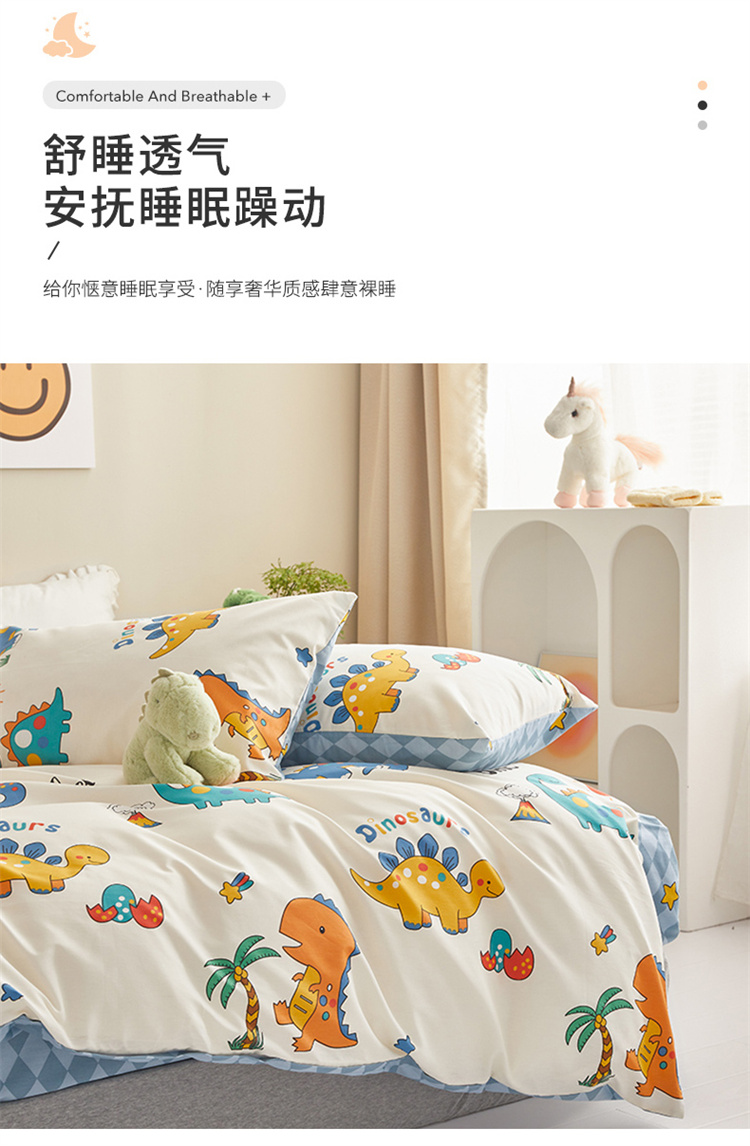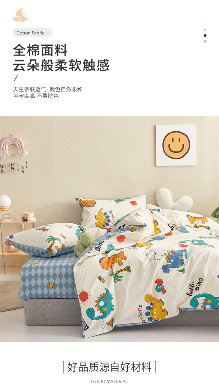 商品名称:绫韵家纺 2023新款初春全棉可爱童心童趣纯棉系列四件套 热带恐龙