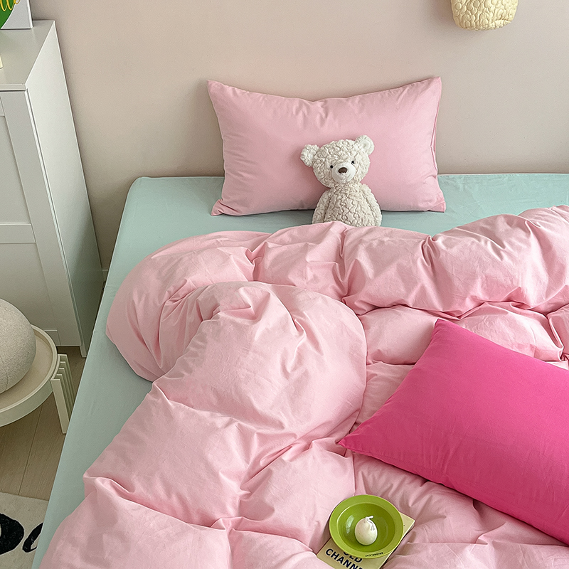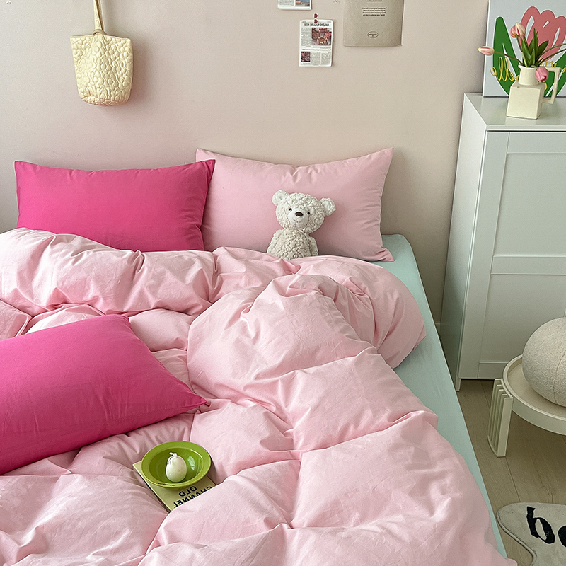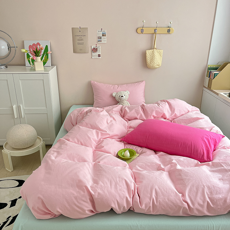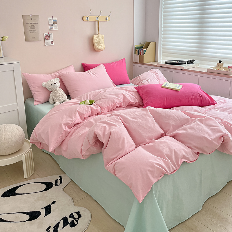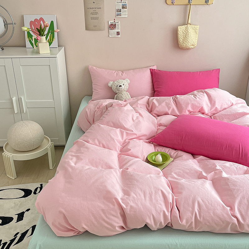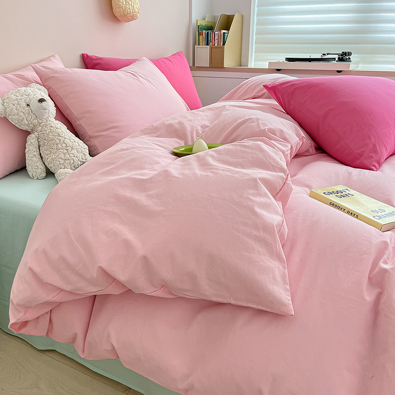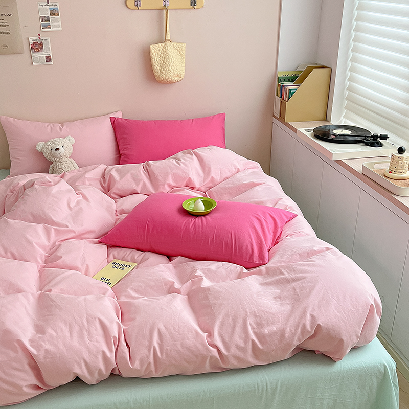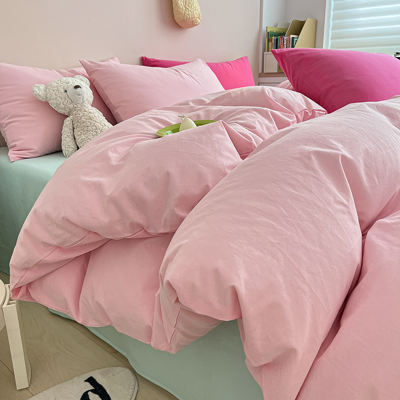 商品名称:寐居 2023新款全棉水洗棉双拼色纯色单被套 ins风-樱花粉