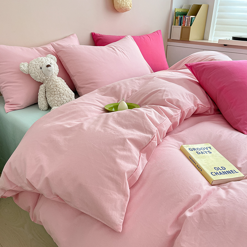 寐居 2023新款全棉水洗棉双拼色纯色单被套 ins风-樱花粉