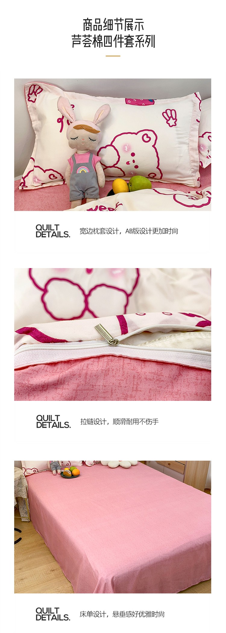 (总)乐居坊 2025新款亲肤舒适A类水洗云朵棉四件套-场景二,佛系少女,国风少女,可爱小新,奇趣小新,少女梦,盛夏光年,糖果派对,小怪兽,小煤球-粉