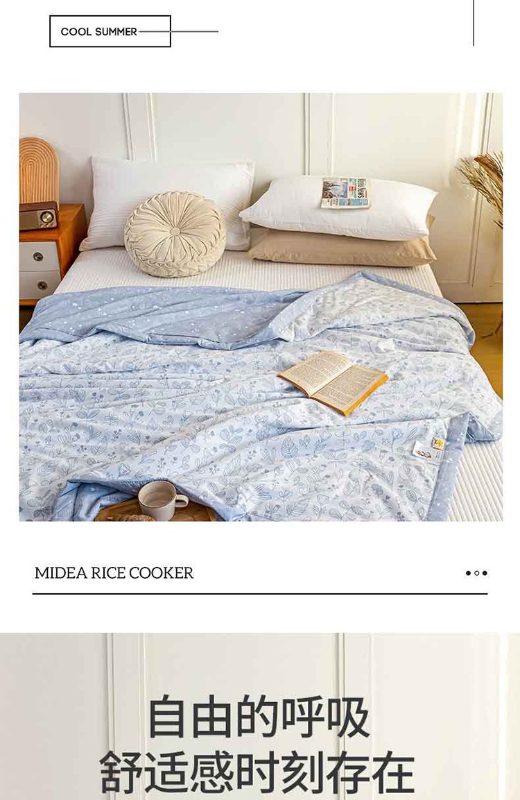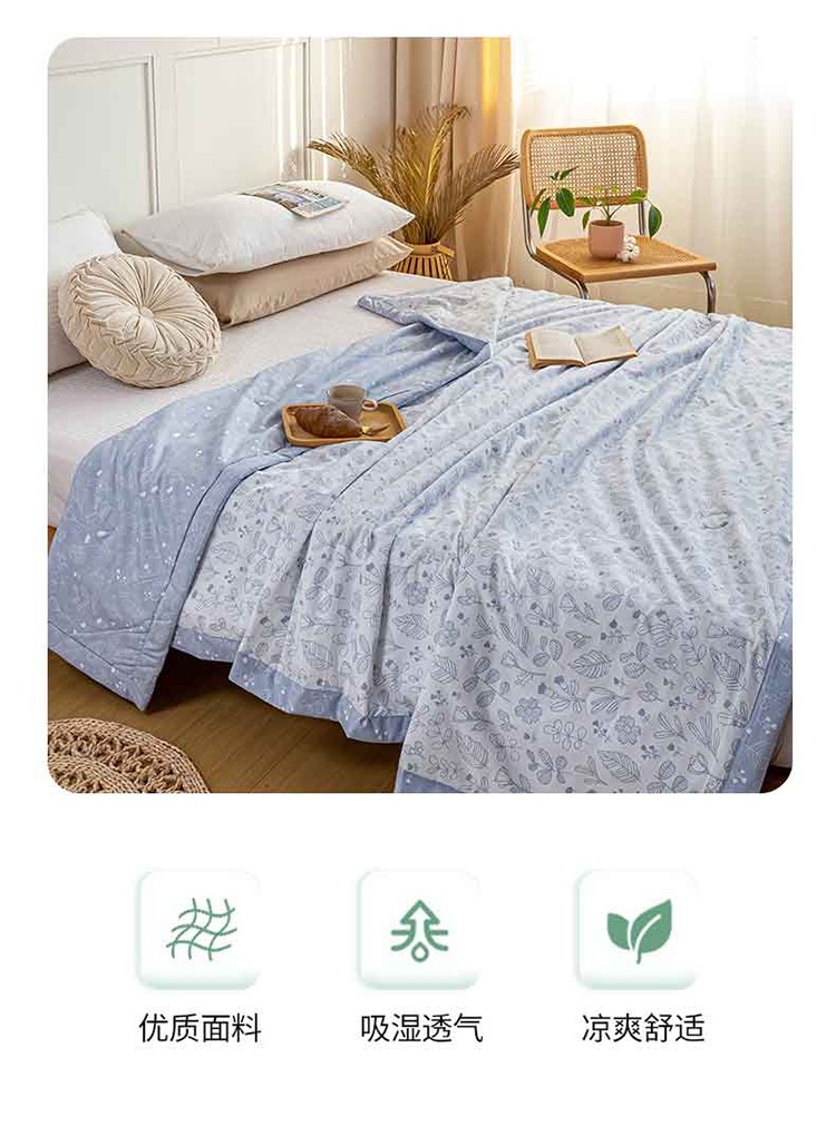 羋多家纺 2023年新款日式手工包德芙棉磨毛夏被 繁花-蓝