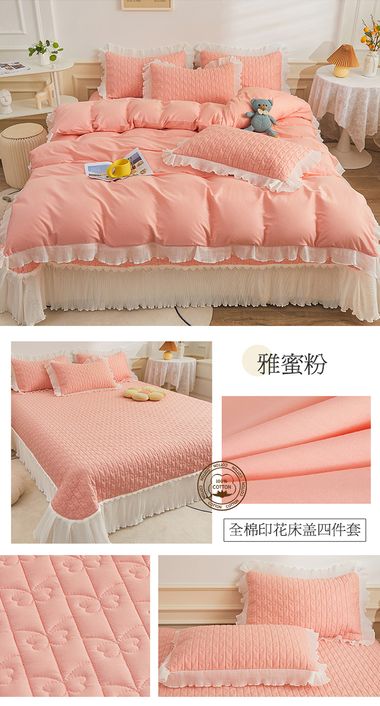 当前位置: 91家纺网 > 商品网购 > 床品套件 > 四件套 > 全棉普通四件套 > 宜凡 2023新款全棉花边床盖三四件套 雅蜜粉