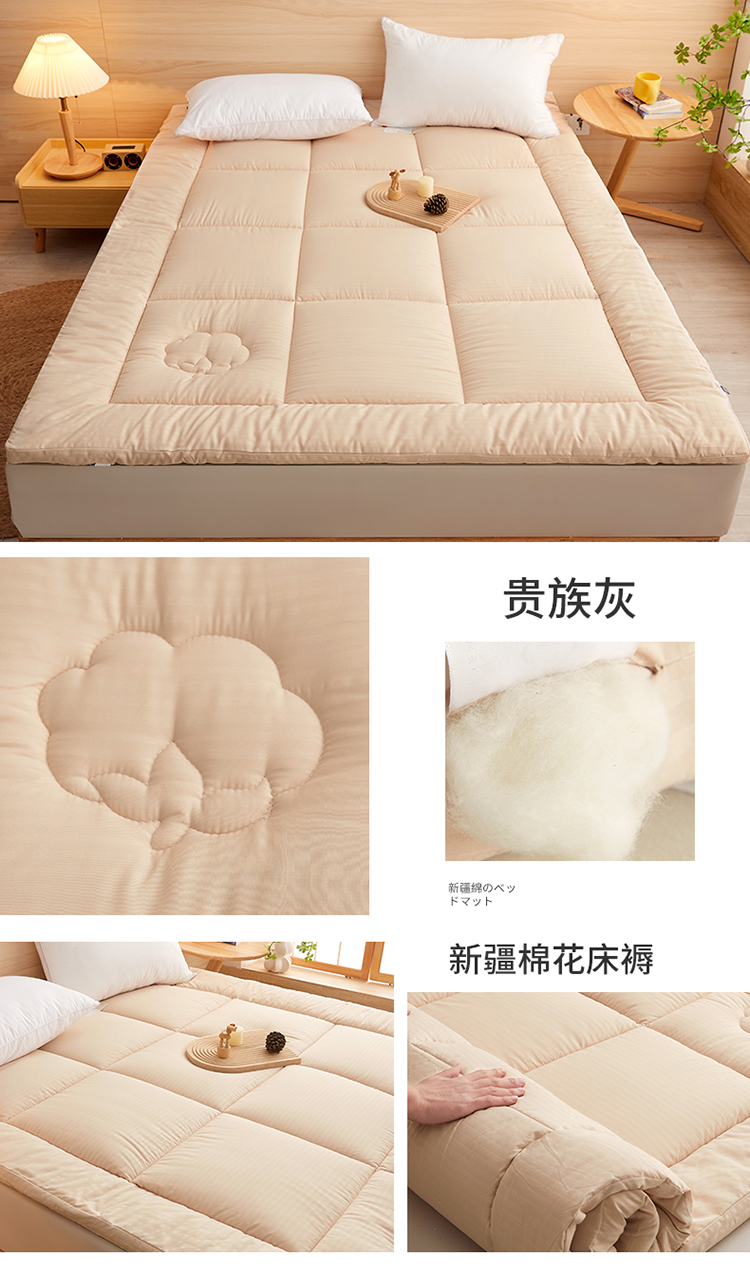 (总)西域种棉人·千百笠 2023新款100%新疆棉花全棉棉花床垫单人垫被,贵族秋,贵族灰