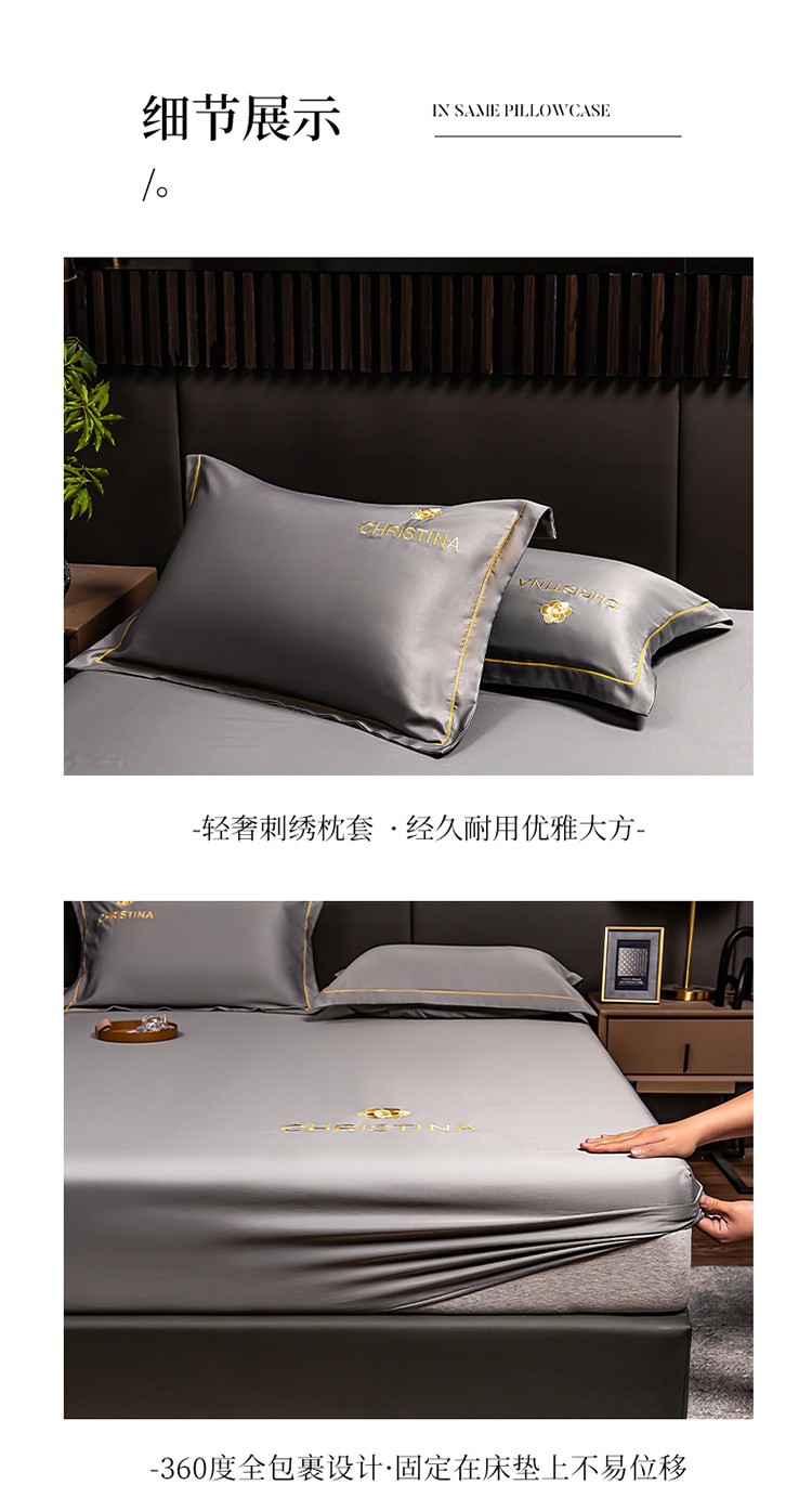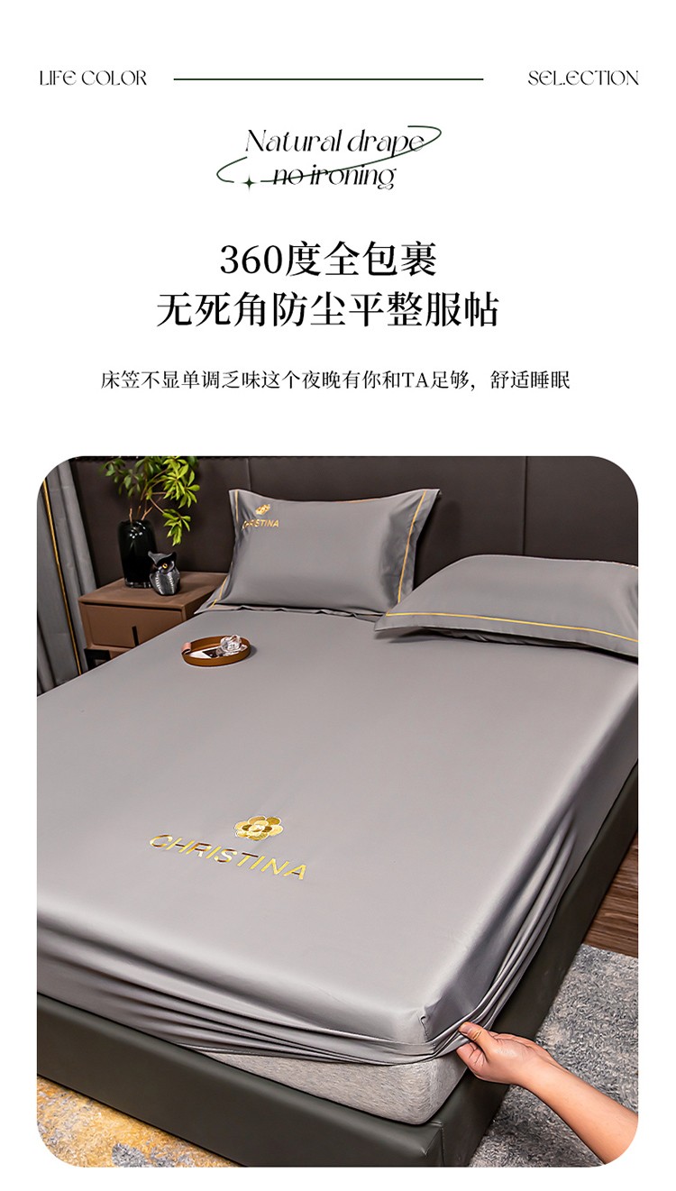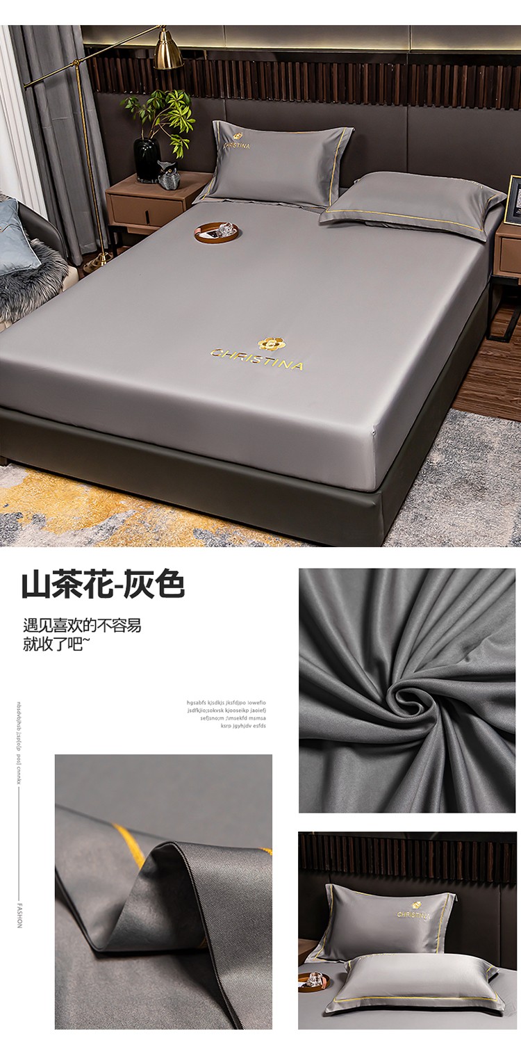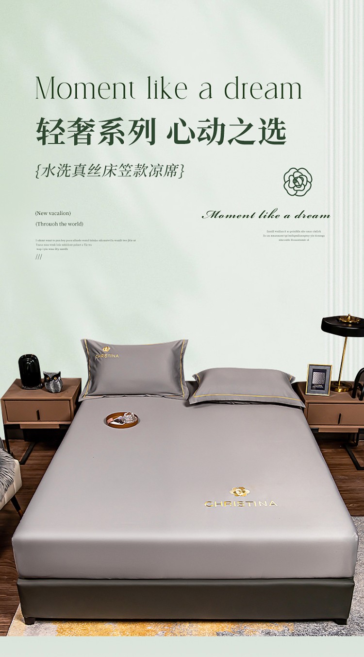 商品名称:丽美人 2023新款水洗真丝床笠款凉席-山茶花系列 山茶花-灰色