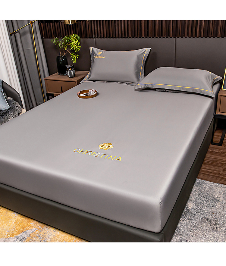丽美人 2023新款水洗真丝床笠款凉席-山茶花系列 山茶花-灰色