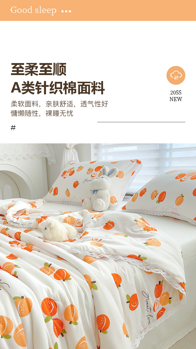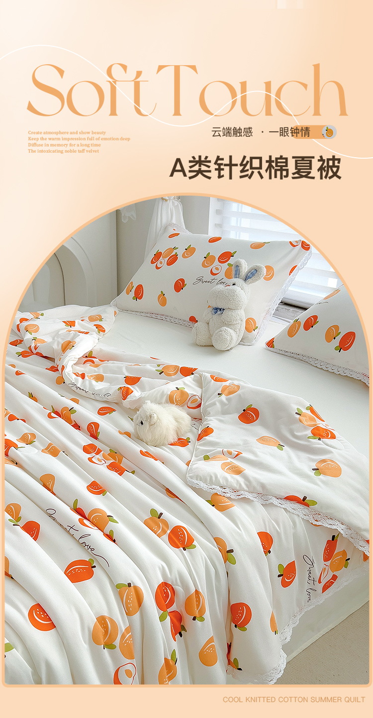 商品名称:丽美人 2023新款A类针织棉夏被 小桃气