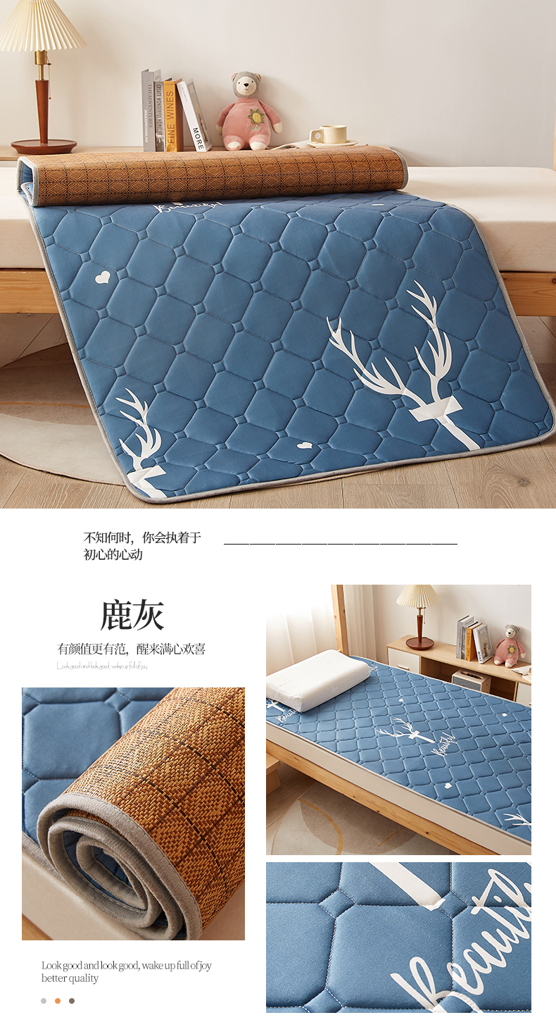 商品名称:花言狐语 2025新款AB双面可用藤席夹棉床褥地垫单人款 鹿灰
