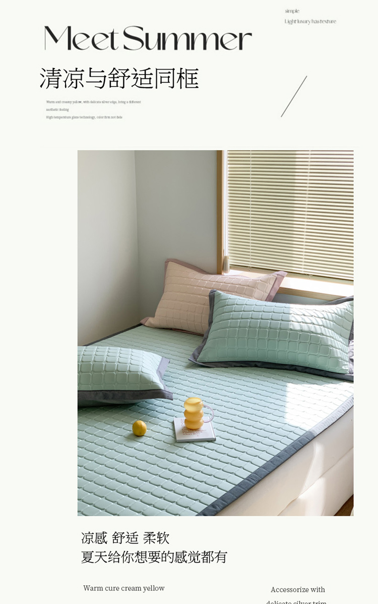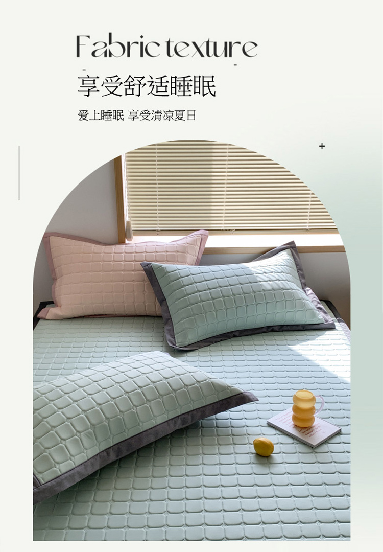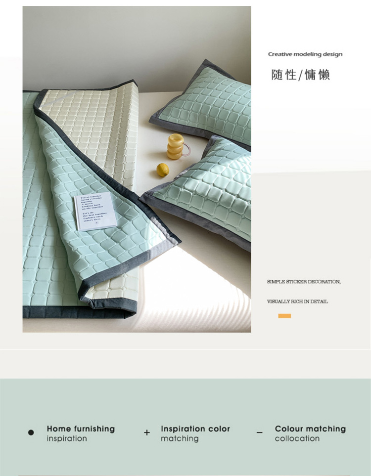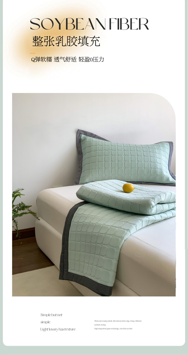 商品名称:柒月 2023新款简约格乳胶凉席 简约格-豆绿