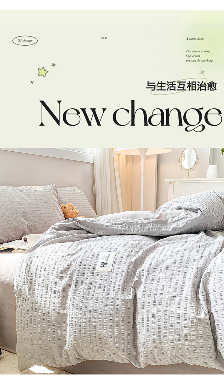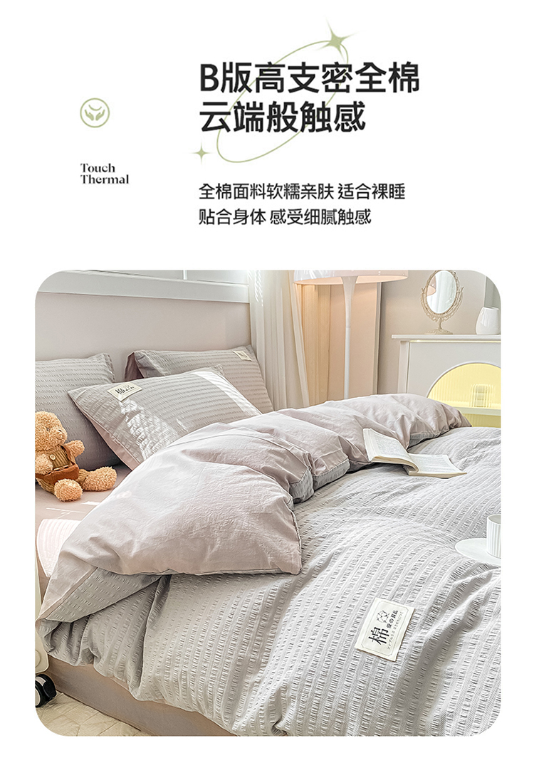 九沐良品 新款全棉泡泡纱四件套 气质灰