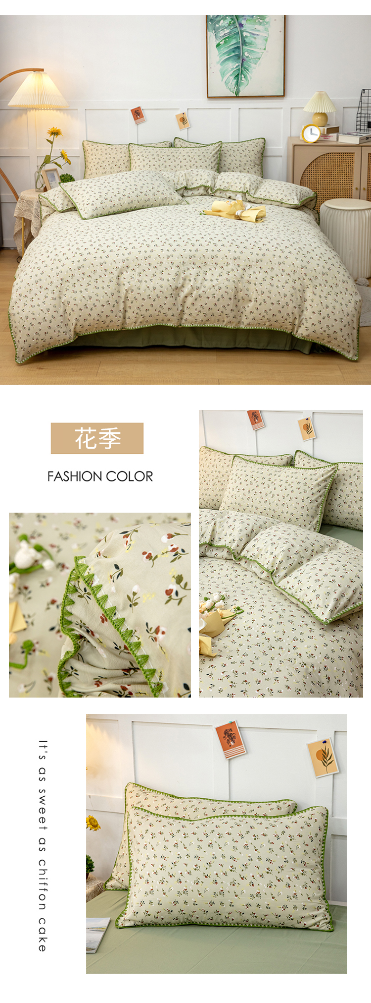 当前位置: 91家纺网 > 商品网购 > 床品套件 > 四件套 > 水洗棉四件套 > 乐居坊2023新款印花水洗双层纱贝壳绣四件套 花季