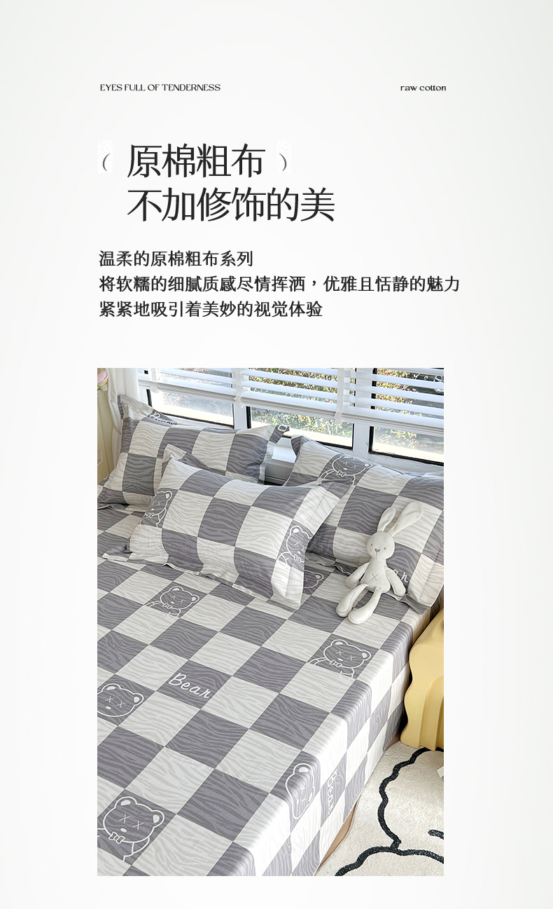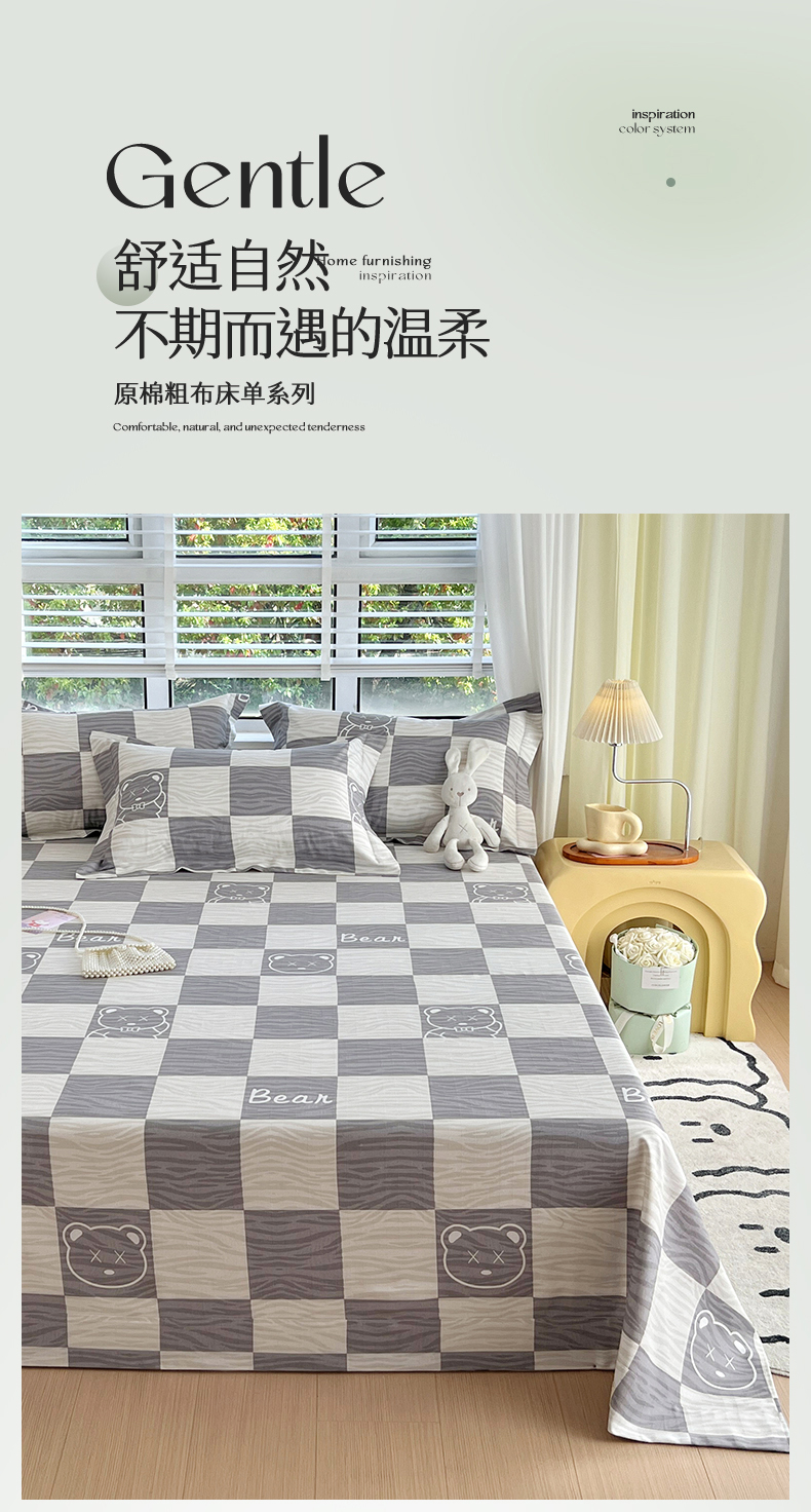 商品名称:凯磊家纺 新款原棉老粗布单品系列-床单 快乐熊
