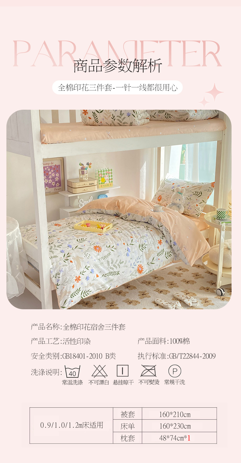 商品名称:多品 2023年13070宿舍三件套 芊芊花园