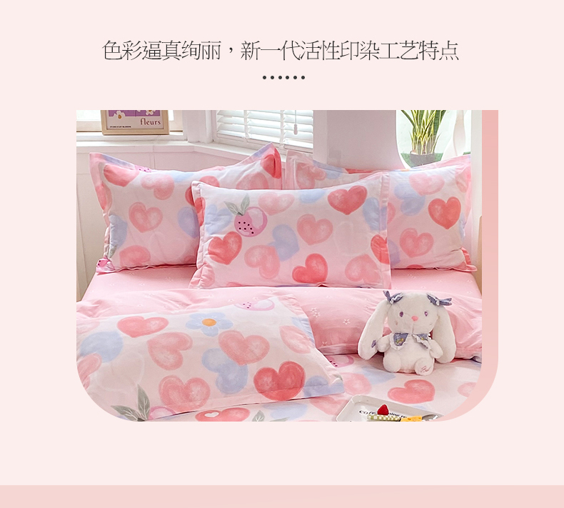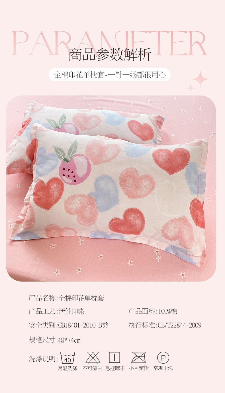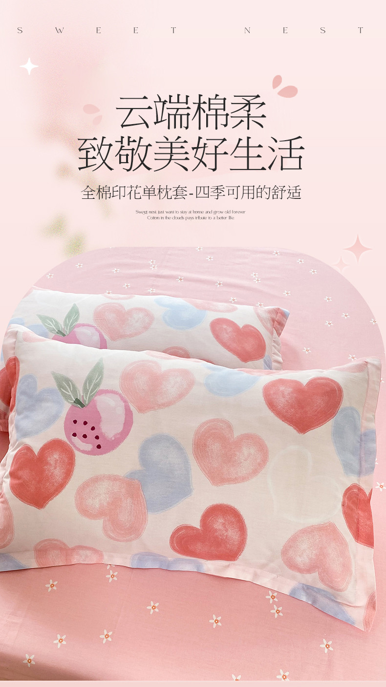 商品名称:多品家纺 2023新款12868全棉双针单枕套 爱心果