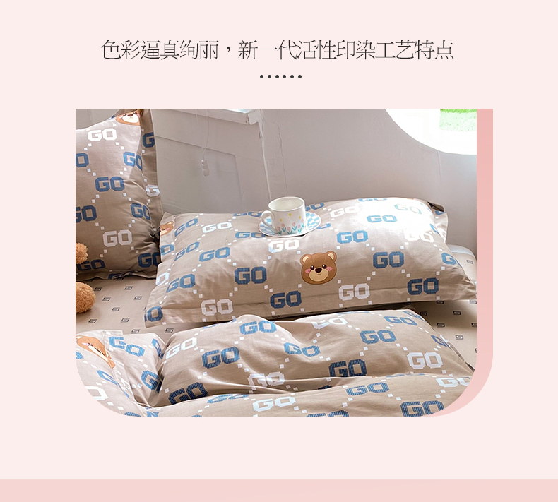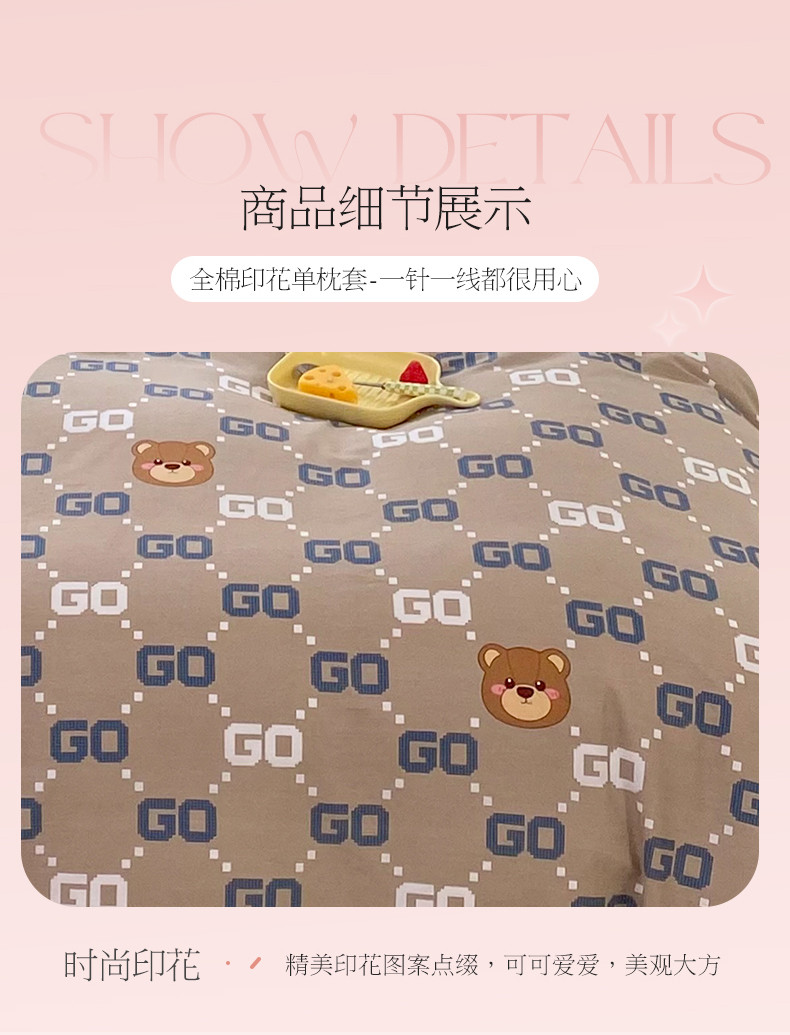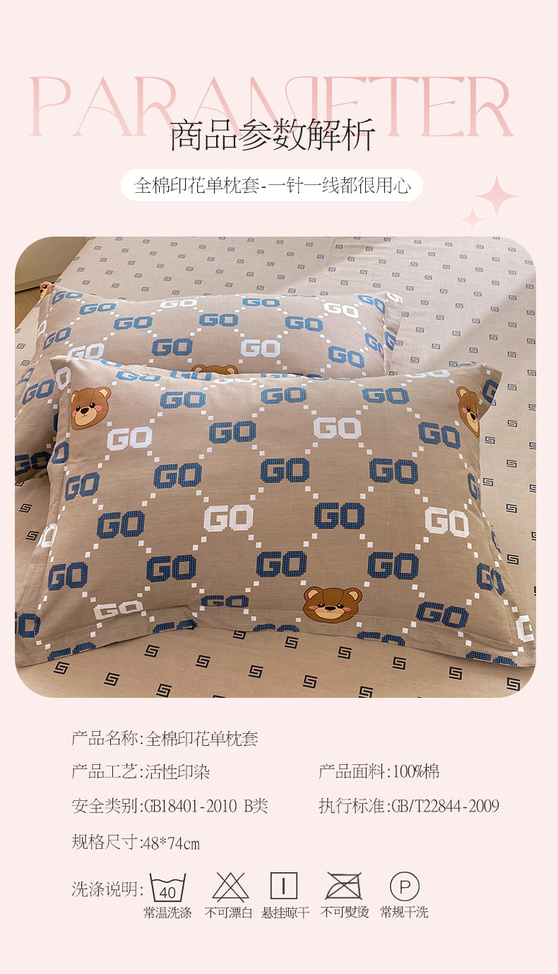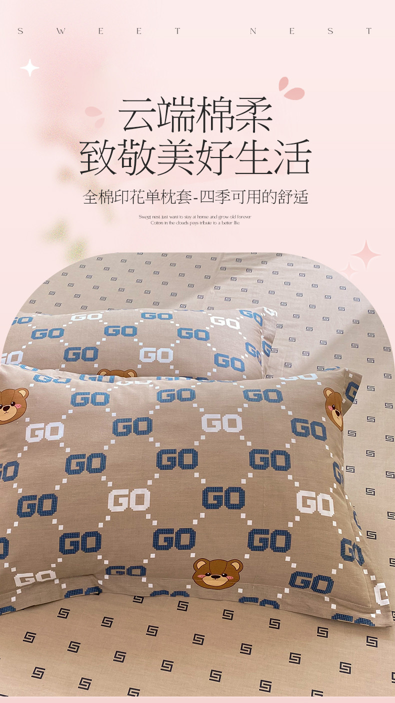 多品家纺 2023新款12868全棉双针单枕套 字母熊