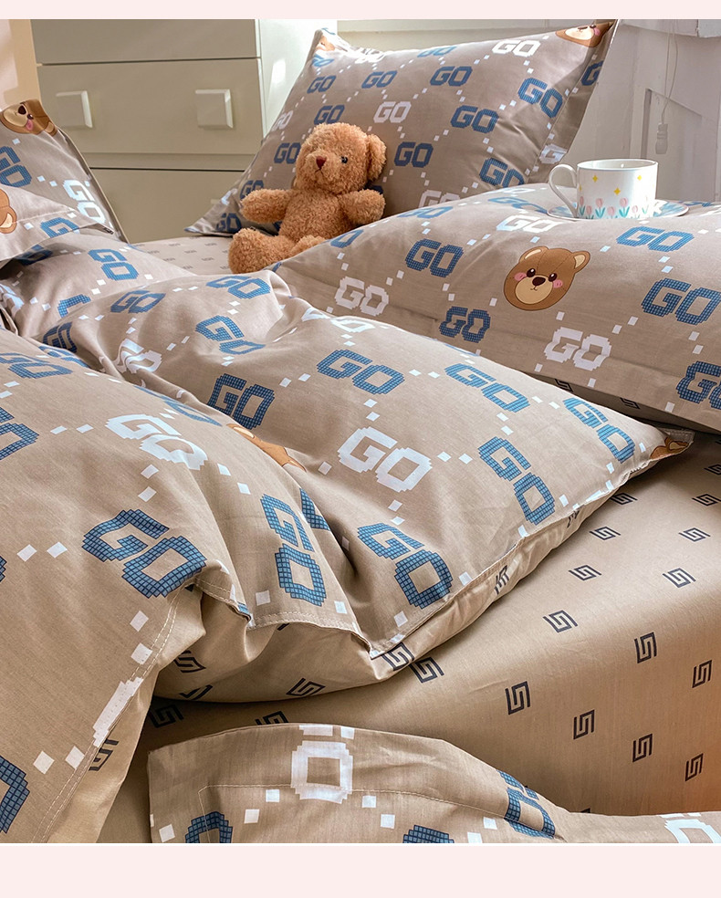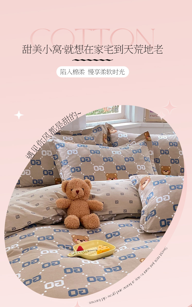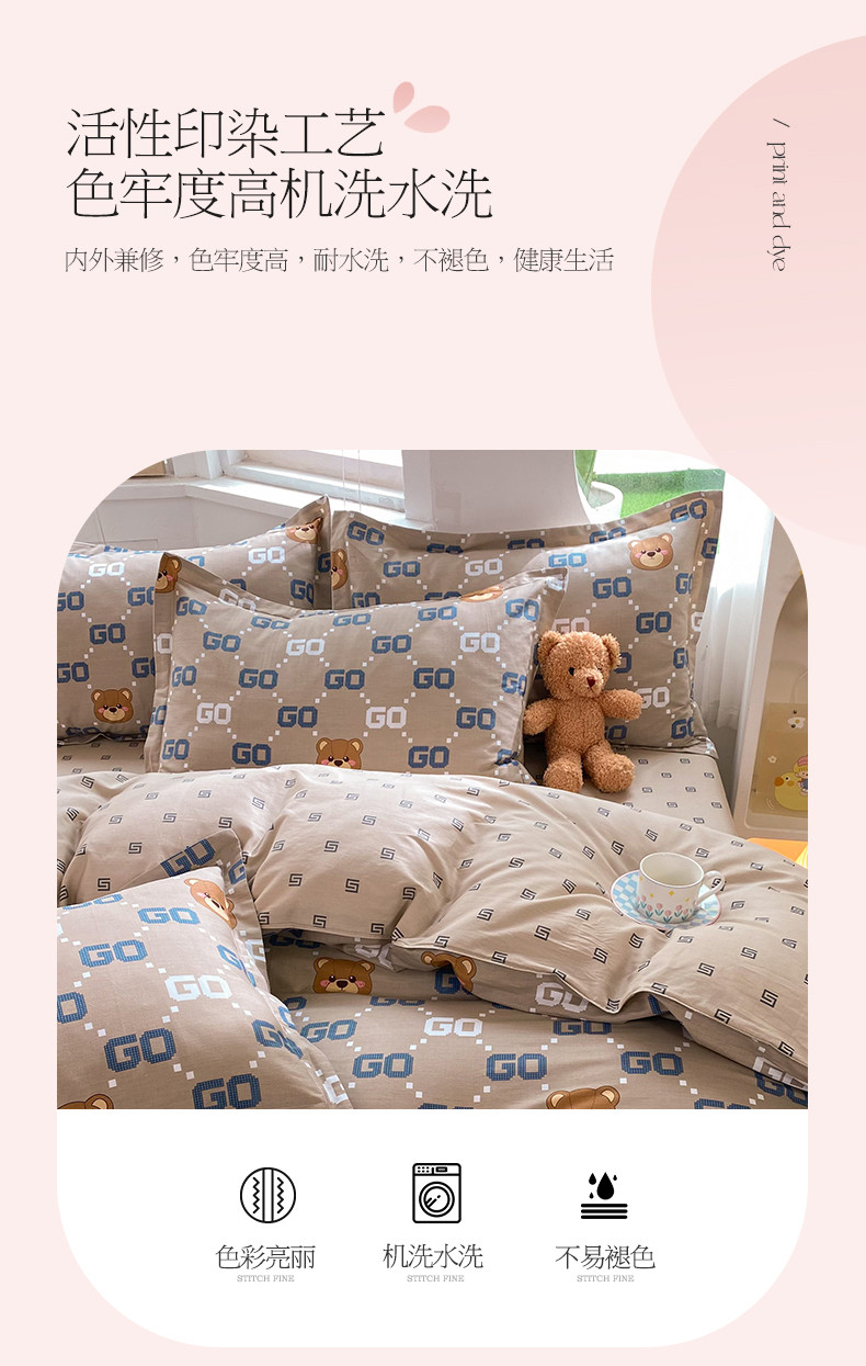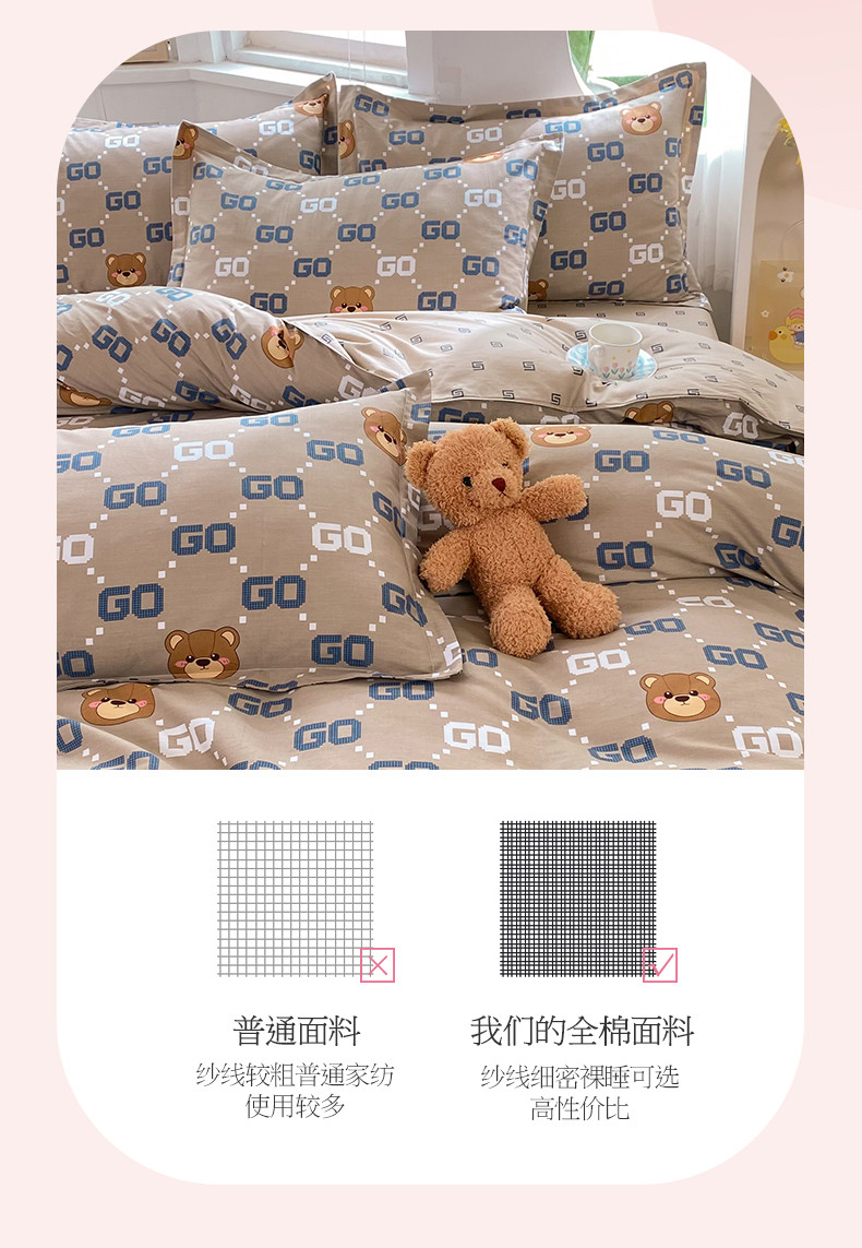 多品家纺 2023新款12868全棉双针单枕套 字母熊