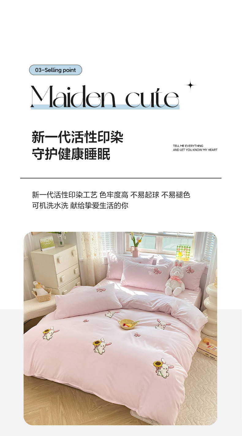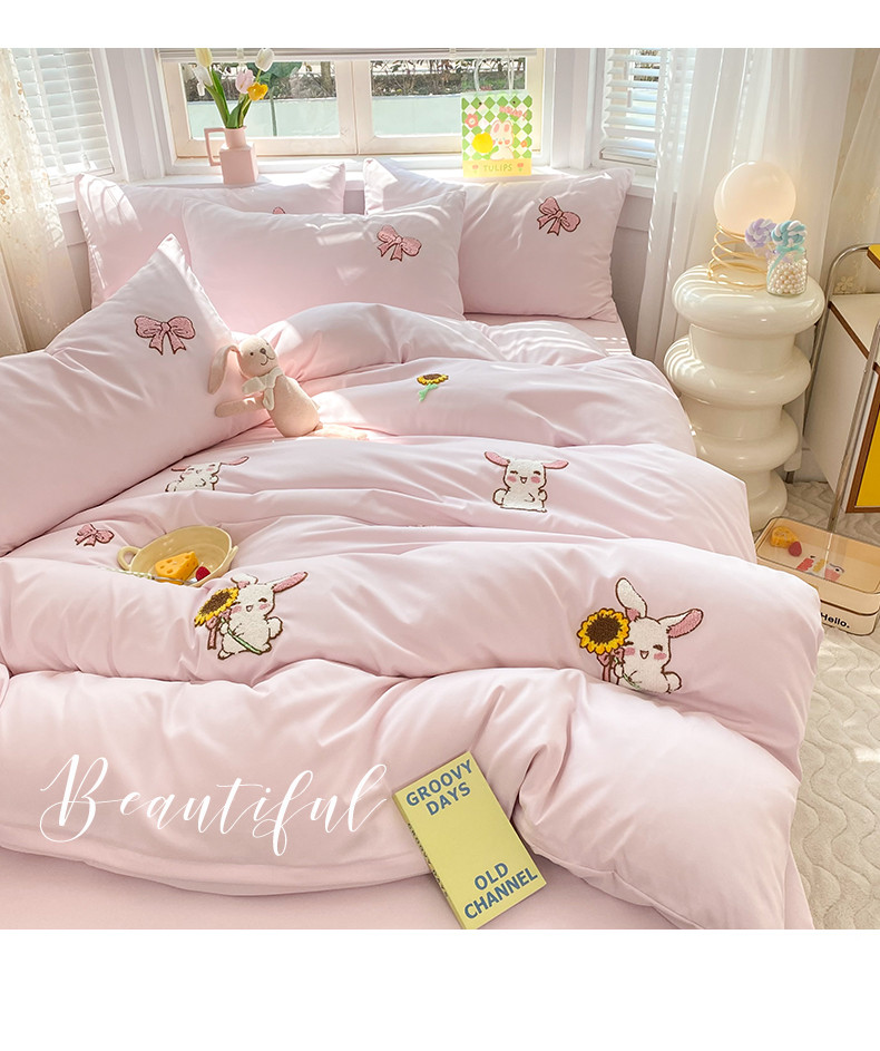 商品名称:丝印良品 2023新款专版水洗棉麻毛巾绣四件套 兔宝贝-粉