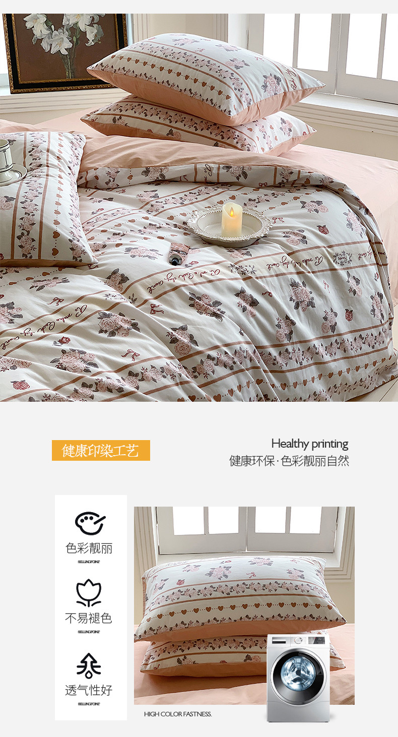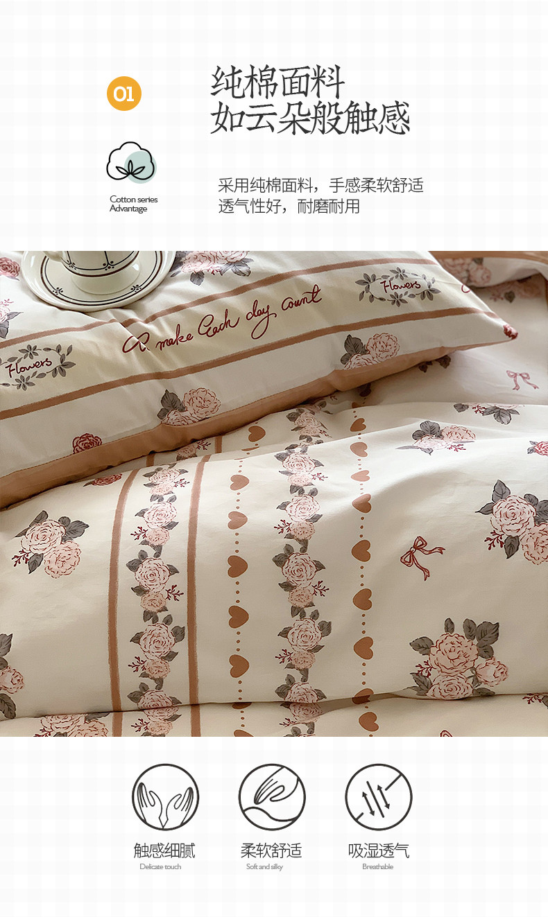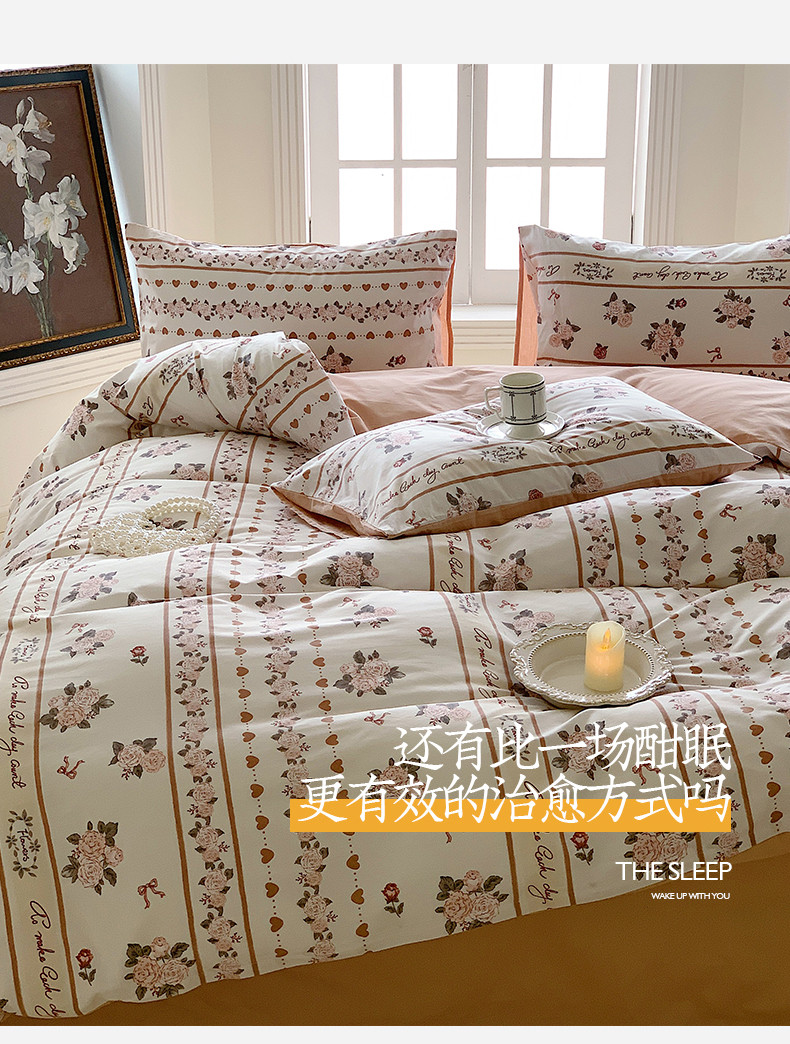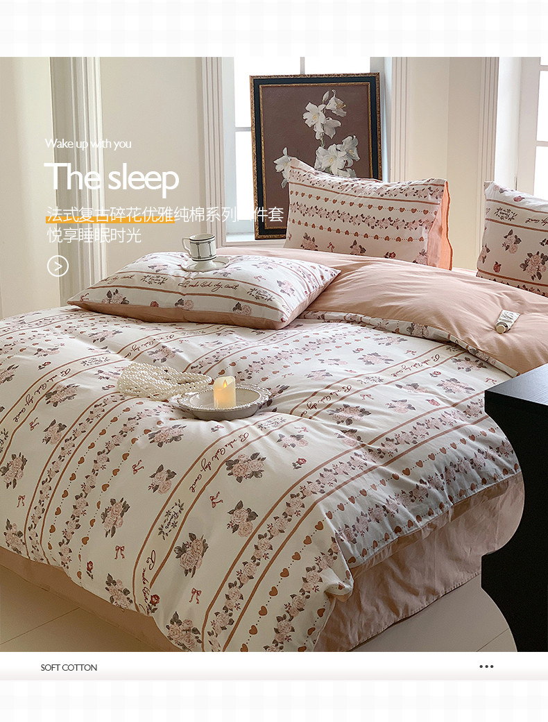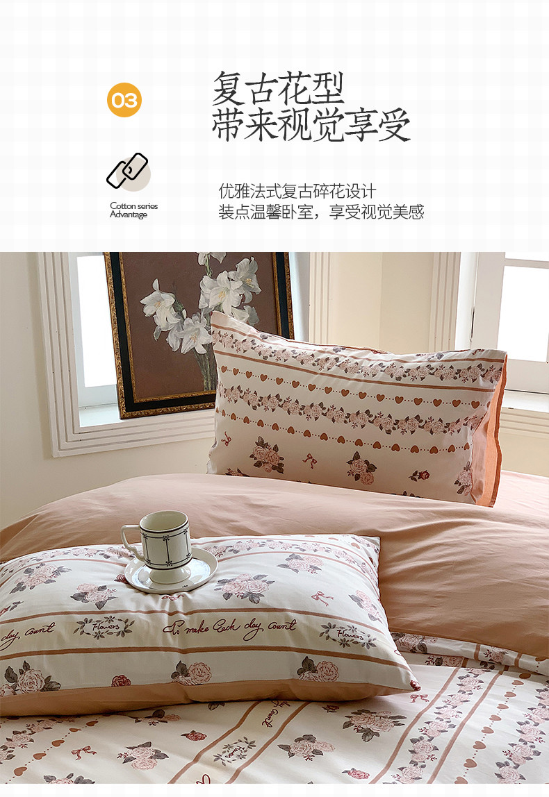 商品名称:桃子 2023新款法式复古碎花优雅纯棉系列四件套-场景二 棉-伊莲娜