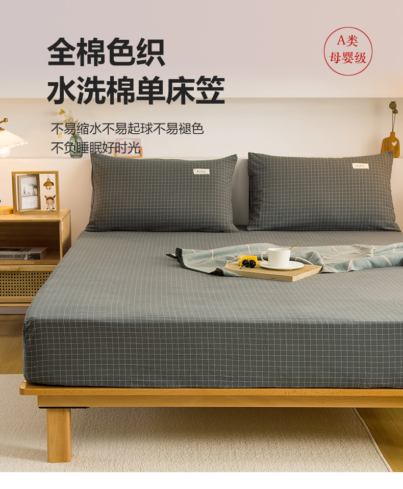 柠萌家居 2023新款全棉色织水洗棉单床笠 灰小格