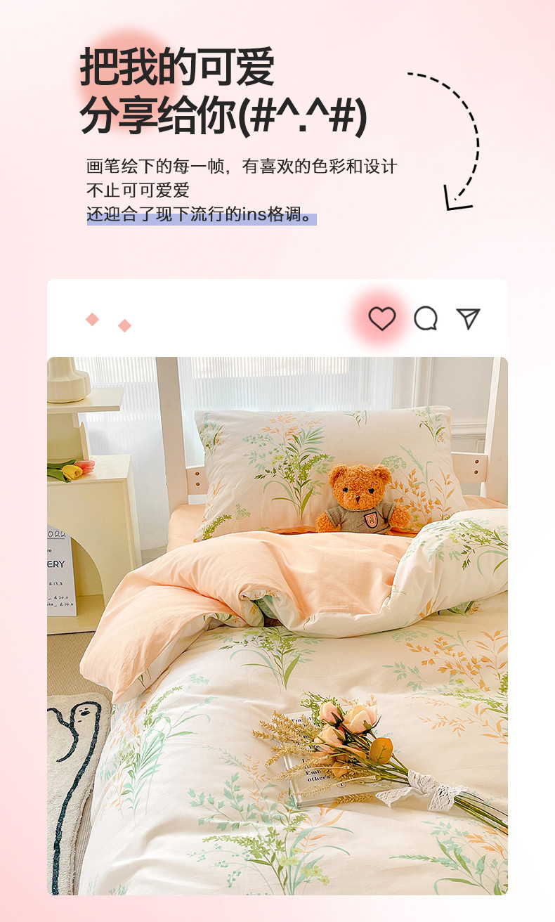 当前位置: 91家纺网 > 商品网购 > 床品套件 > 三件套 > 名兮家居 2023新款全棉印花学生三件套 爱莲娜