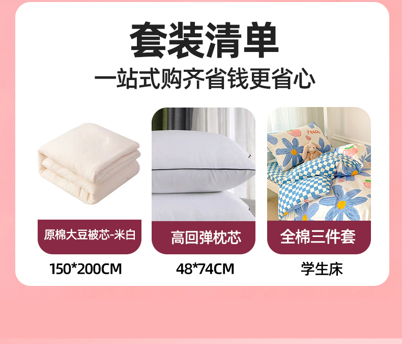 学生床五件套 【三件套+枕芯+春秋被约3斤】 | ¥136.00 |