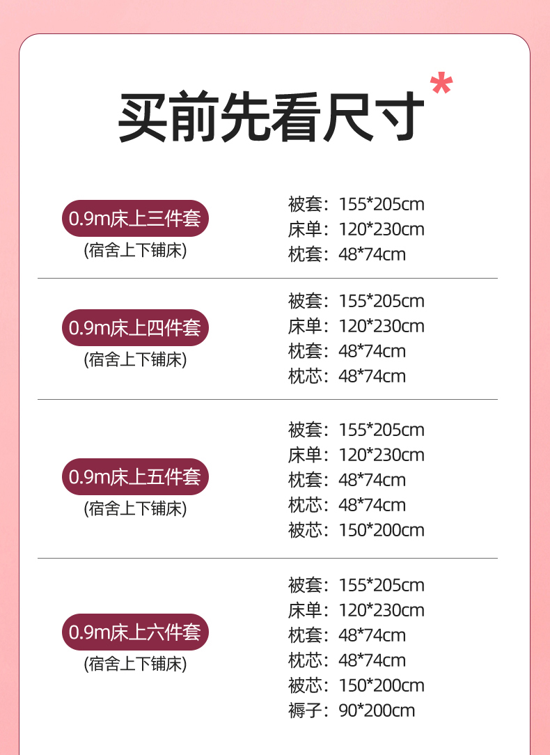 学生床六件套 【三件套+枕芯+春秋被约3斤+垫褥】 | ¥171.00 |