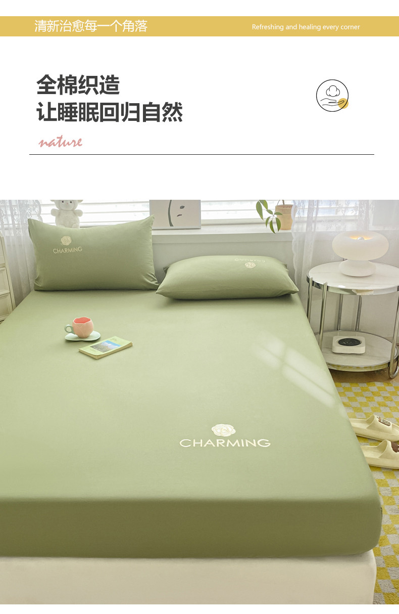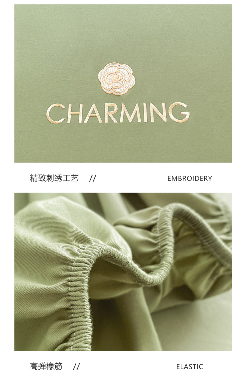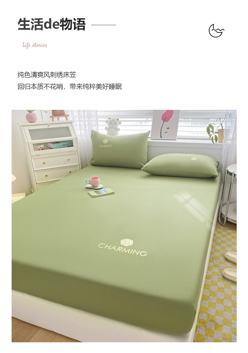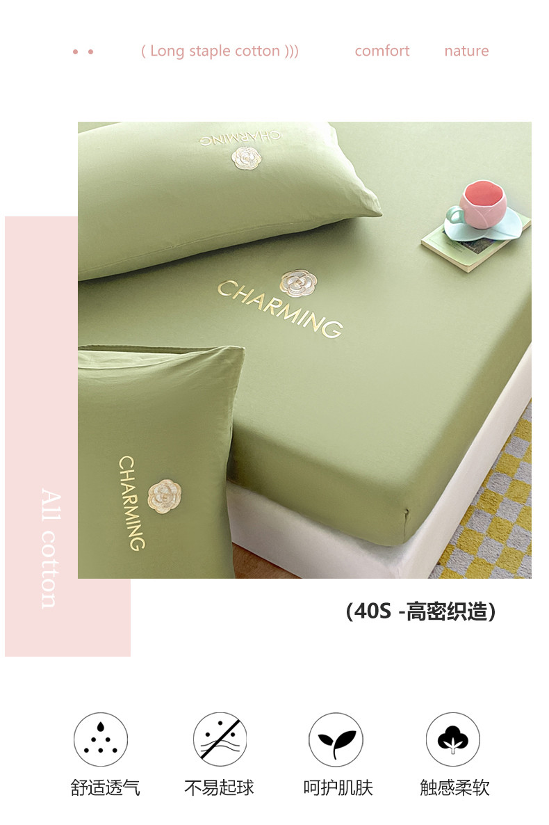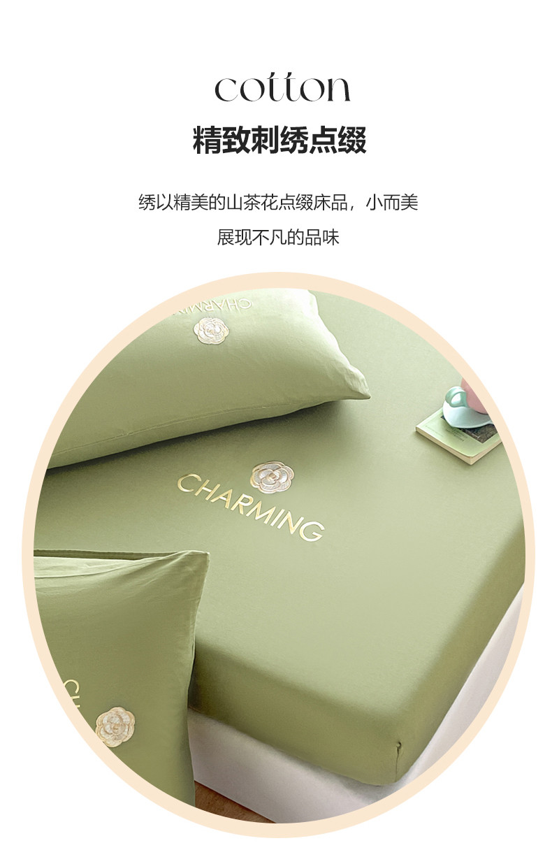 • 91家纺网 家纺一手货源 找家纺 暖季 2025新款40长绒棉刺绣款单床笠山茶花系列 山茶花-抹茶绿