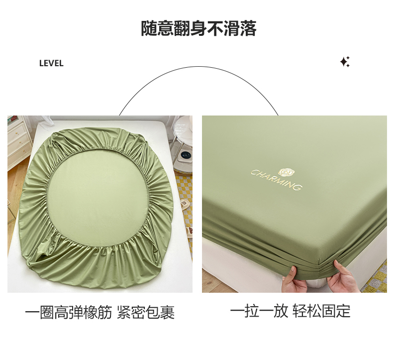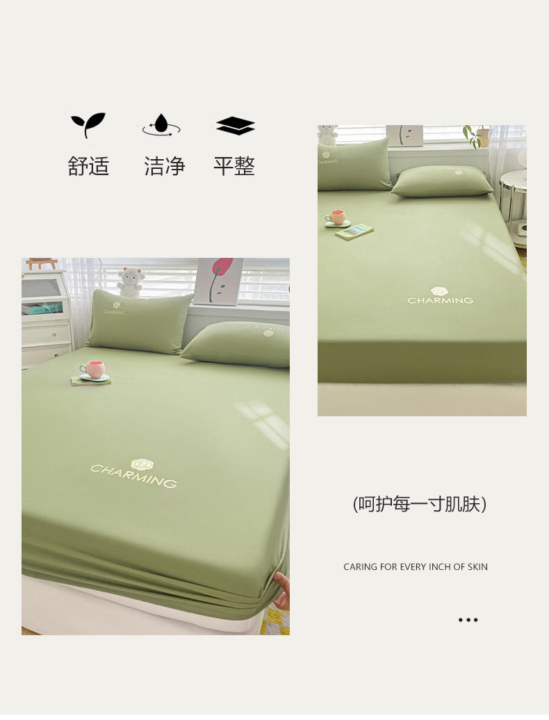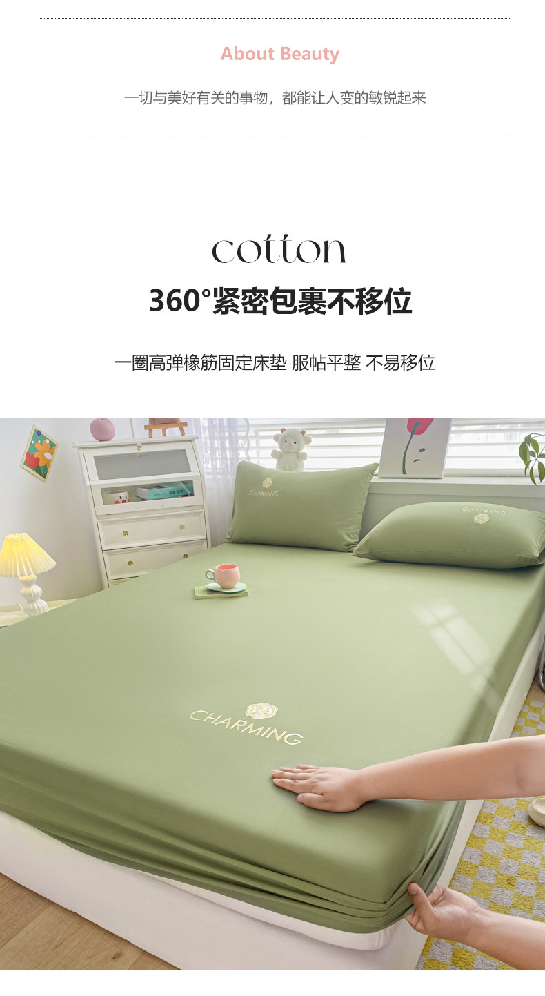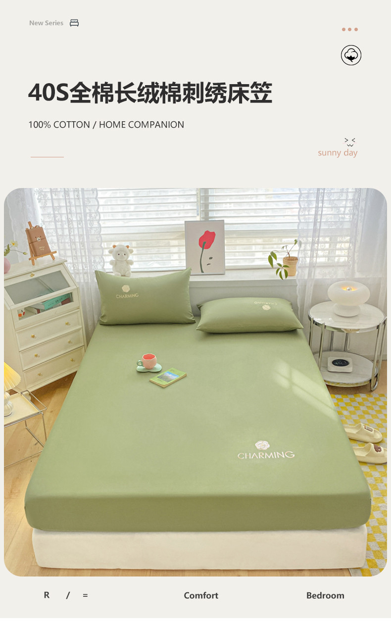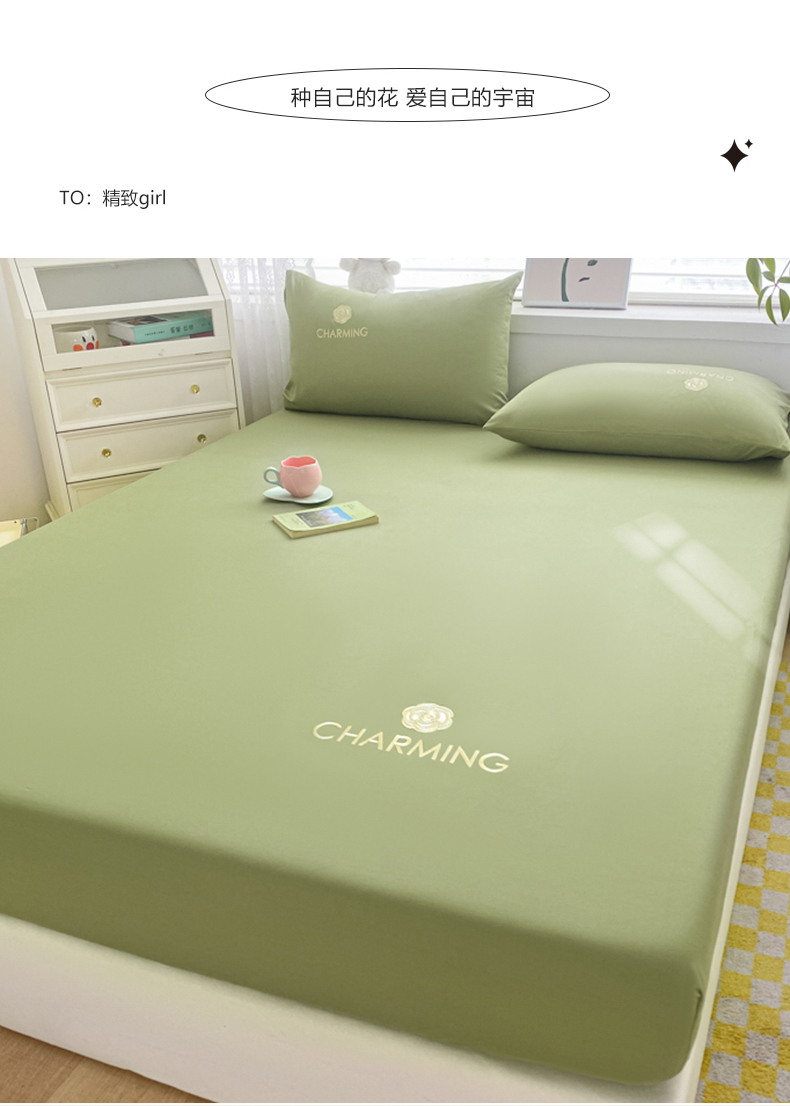 • 91家纺网 家纺一手货源 找家纺 暖季 2025新款40长绒棉刺绣款单床笠山茶花系列 山茶花-抹茶绿