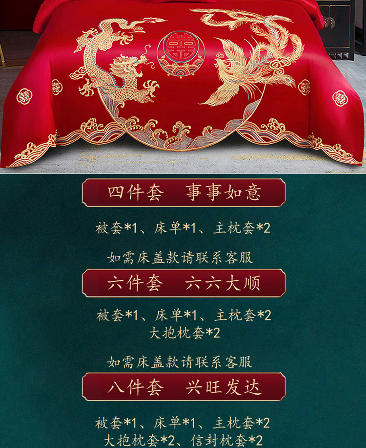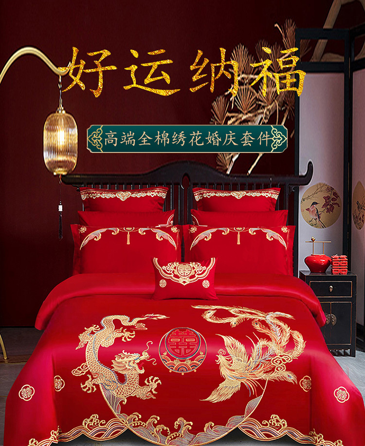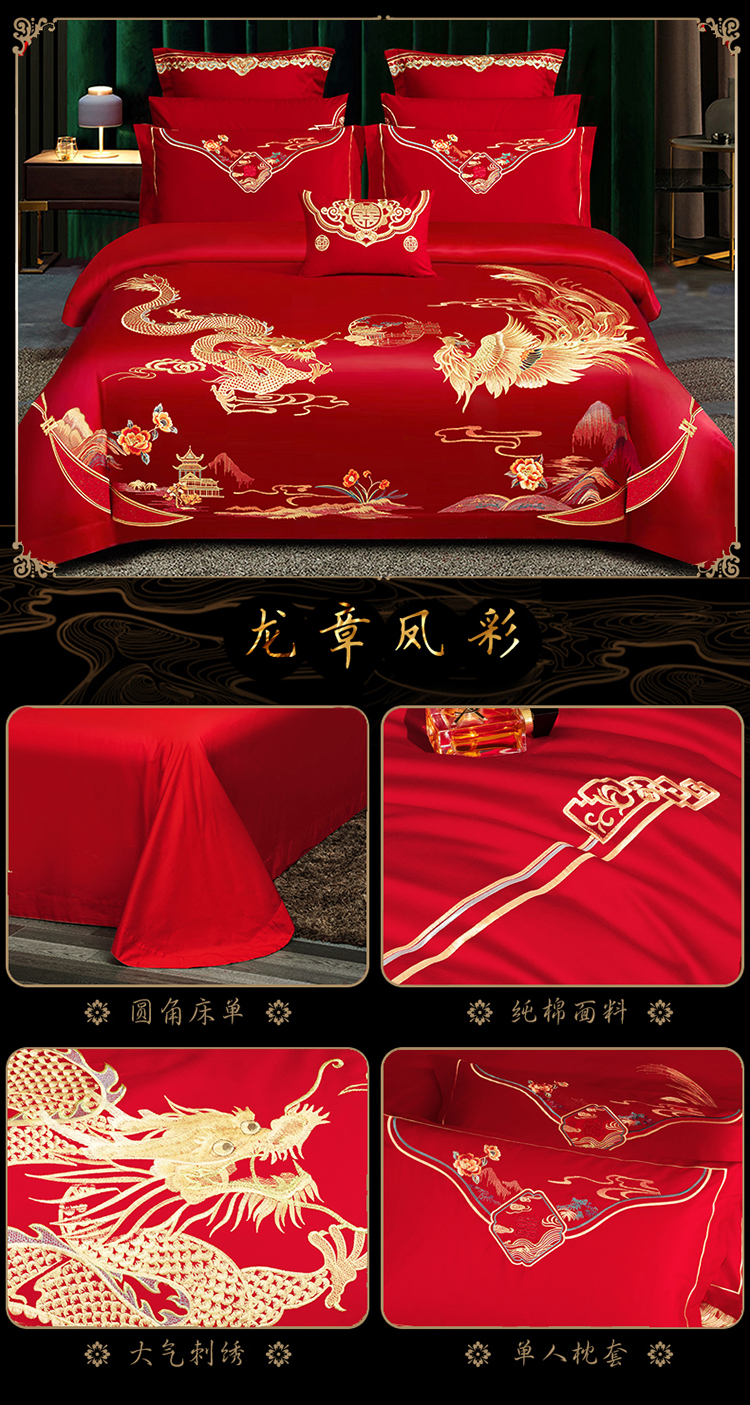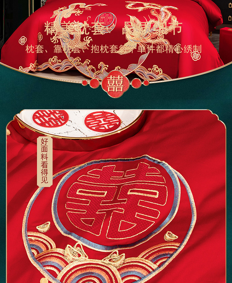 (总)蒂爵 全棉纯棉提花顶奢重工绣花工艺款婚庆四件套多件套,龙凤传奇,禧龙禧凤,缘定江山,挚爱一生