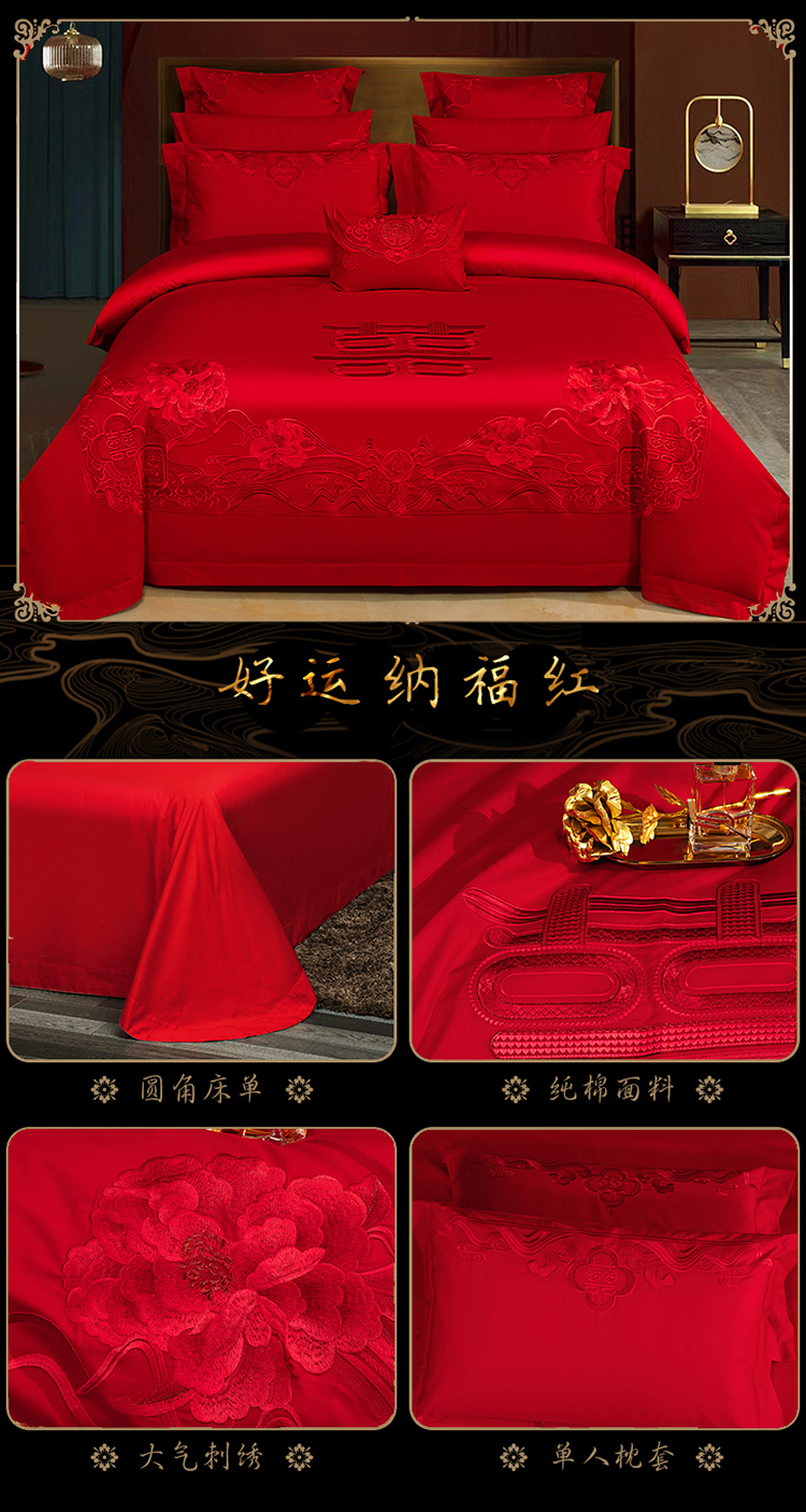 (总)蒂爵 全棉纯棉长绒棉大绣花婚庆四件套,百喜纳福,百子添福,多子多福,锦绣良缘,龙凤添喜,盛世花开