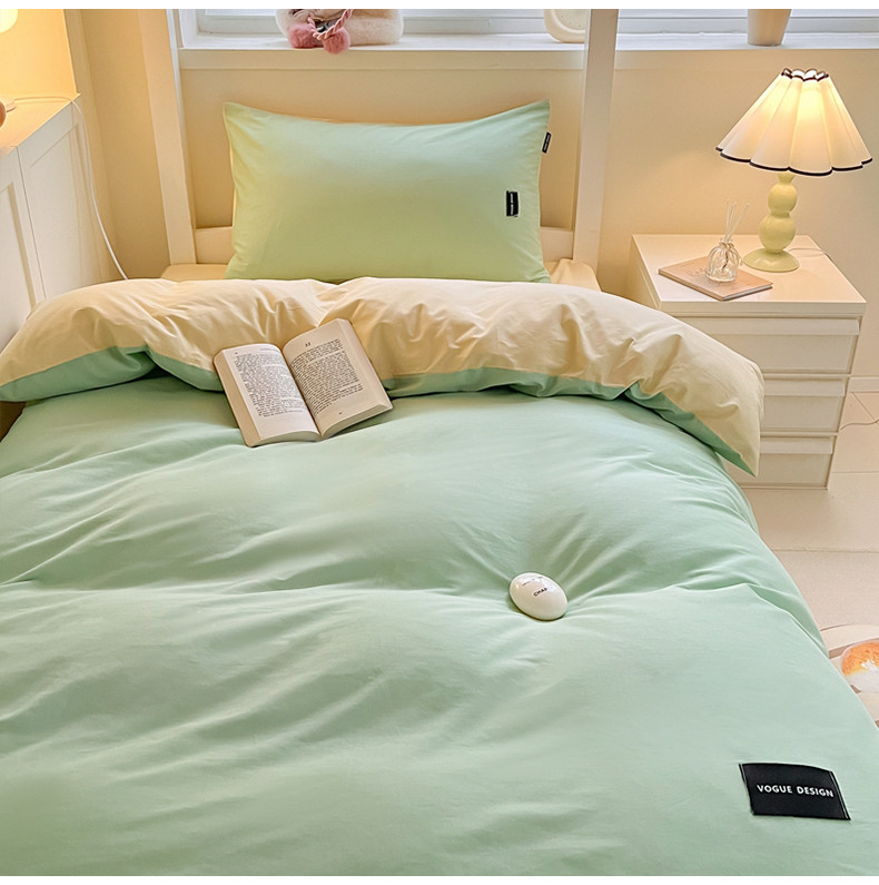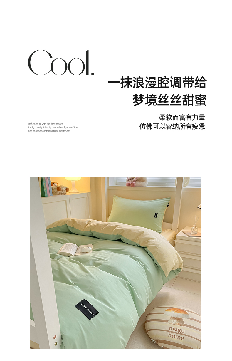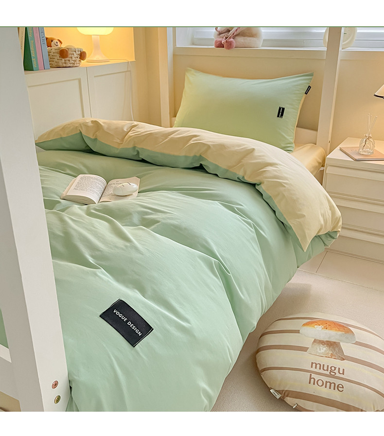 佰亿莱 2024新款全棉无印风学生宿舍套件 香草绿 +奶黄