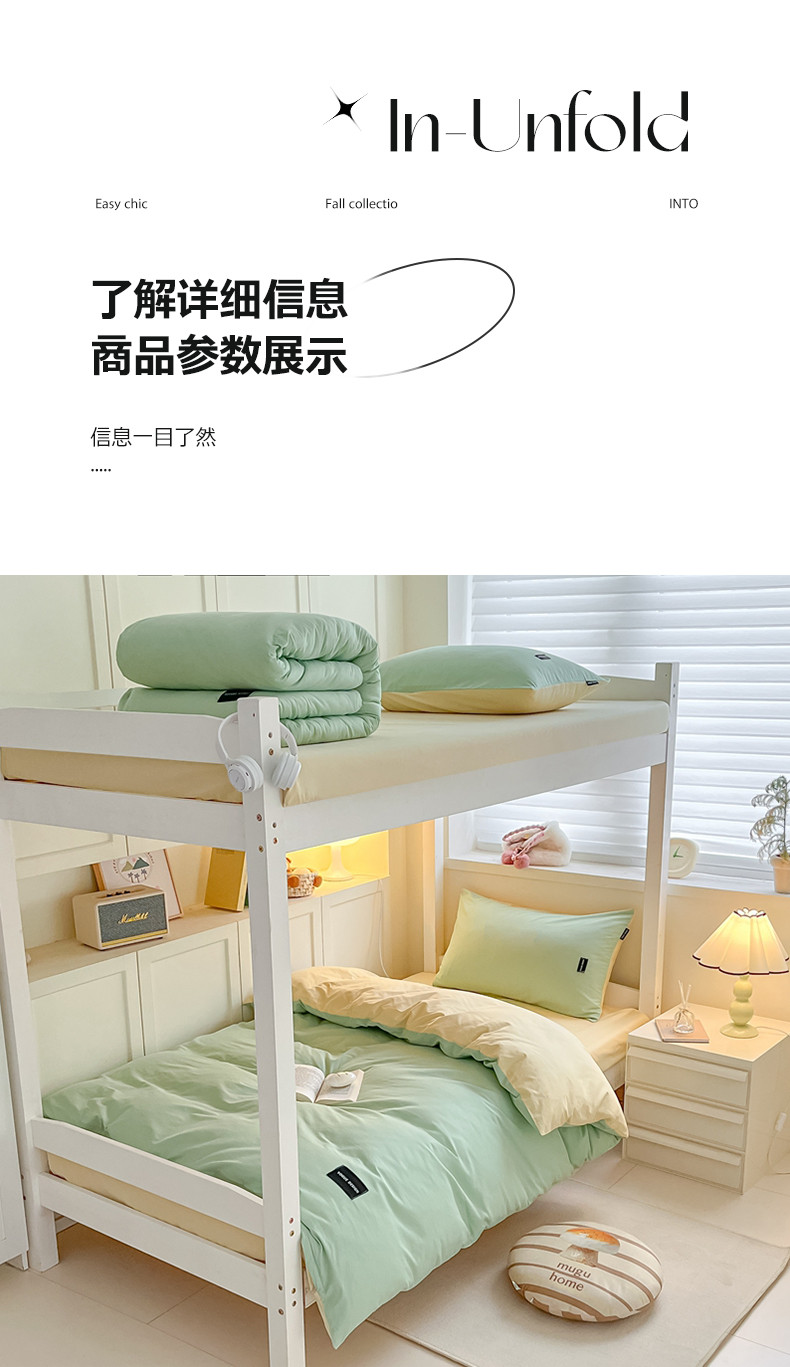 商品名称:佰亿莱 2024新款全棉无印风学生宿舍套件 香草绿 +奶黄