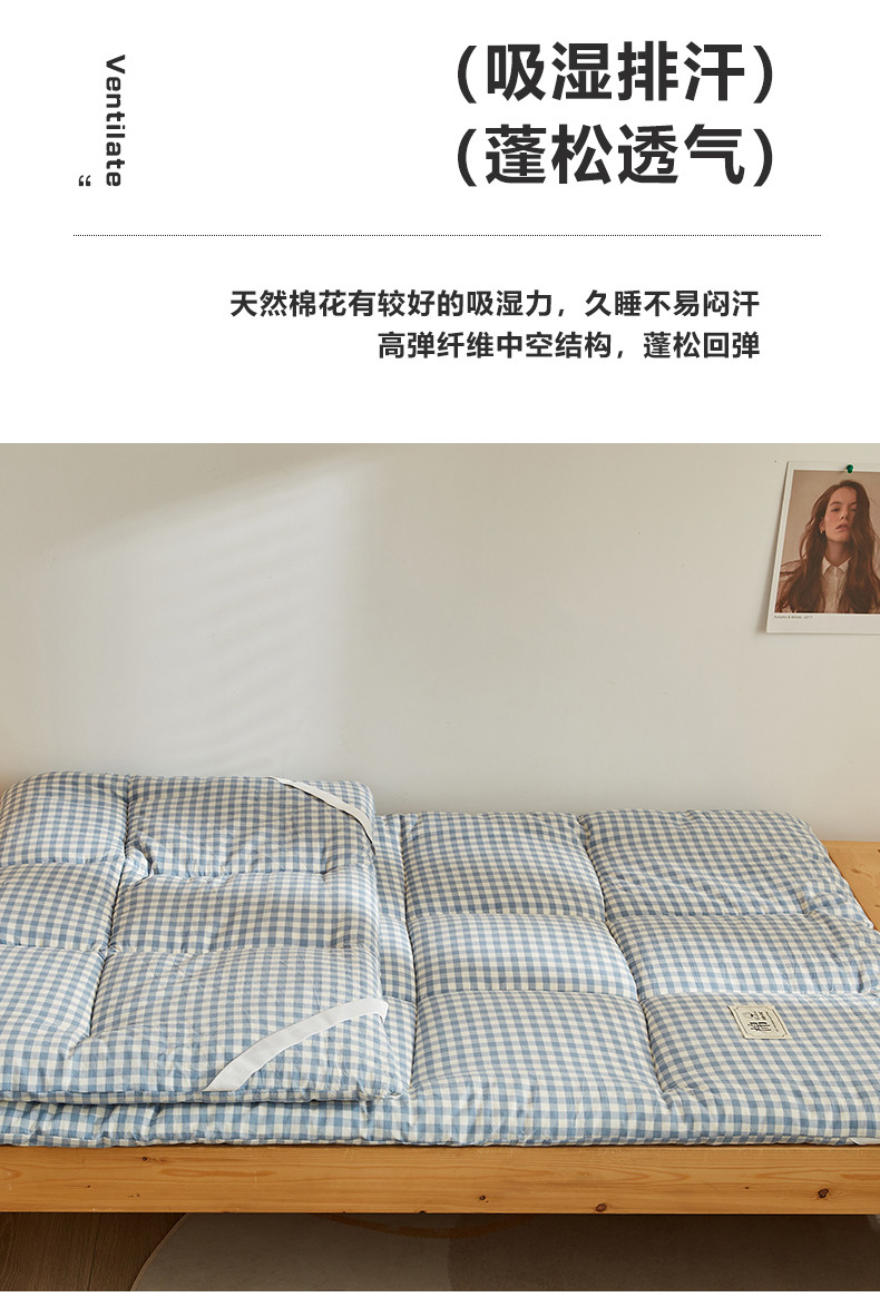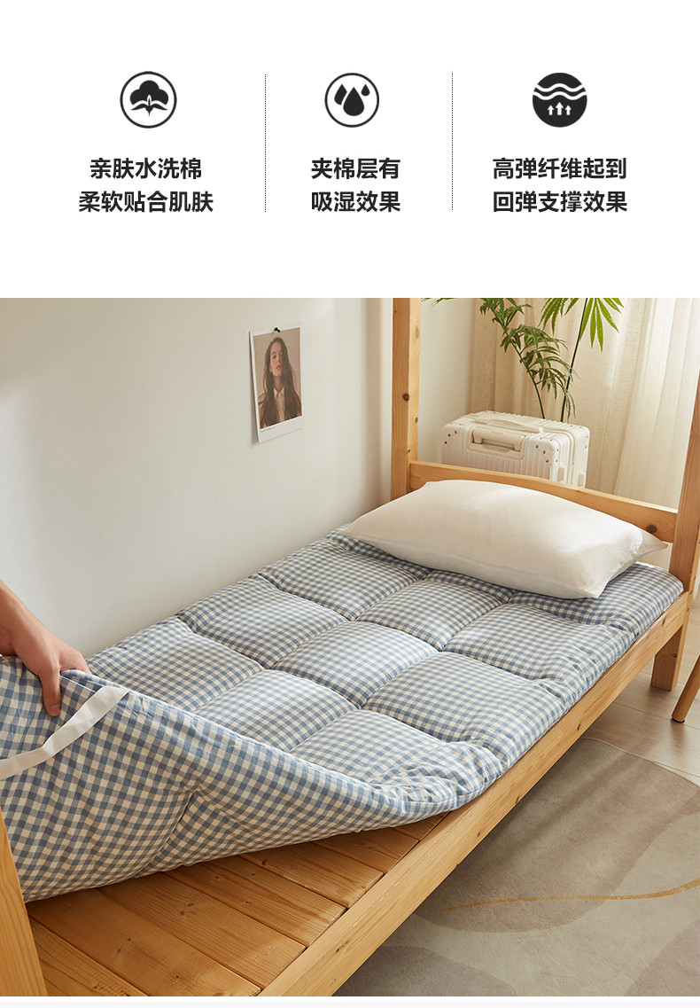 商品名称:暖阳 2025新款A类新疆棉花学生宿舍床垫 浅蓝小格