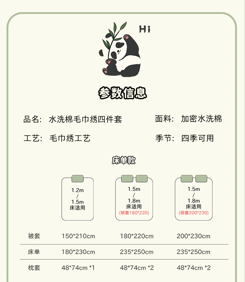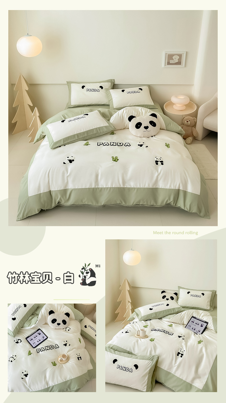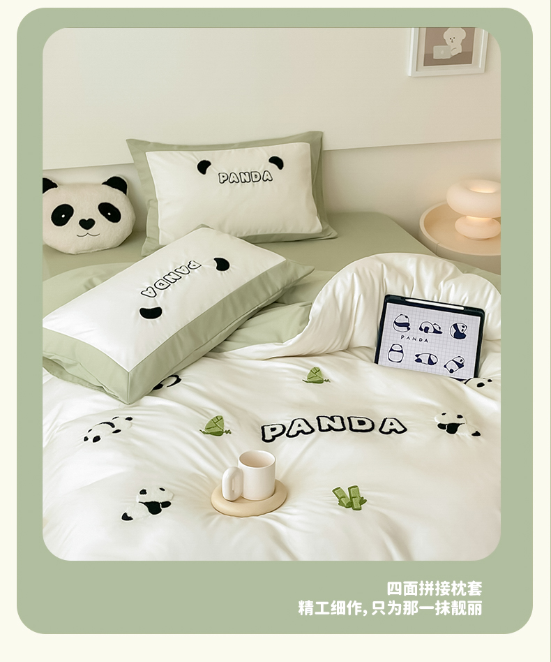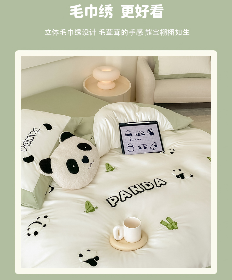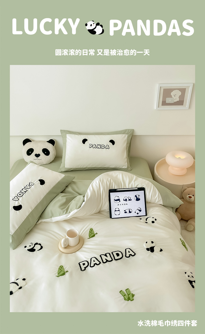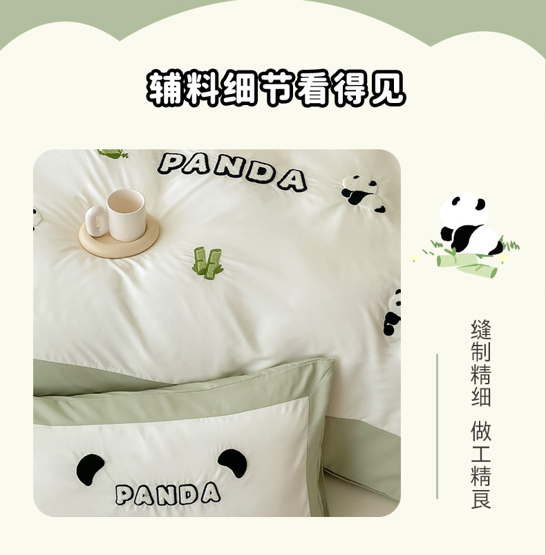 当前位置: 91家纺网 > 商品网购 > 床品套件 > 四件套 > 水洗棉四件套 > 我心家纺 2023新款水洗棉毛巾绣四件套-熊猫系列 竹林宝贝-白