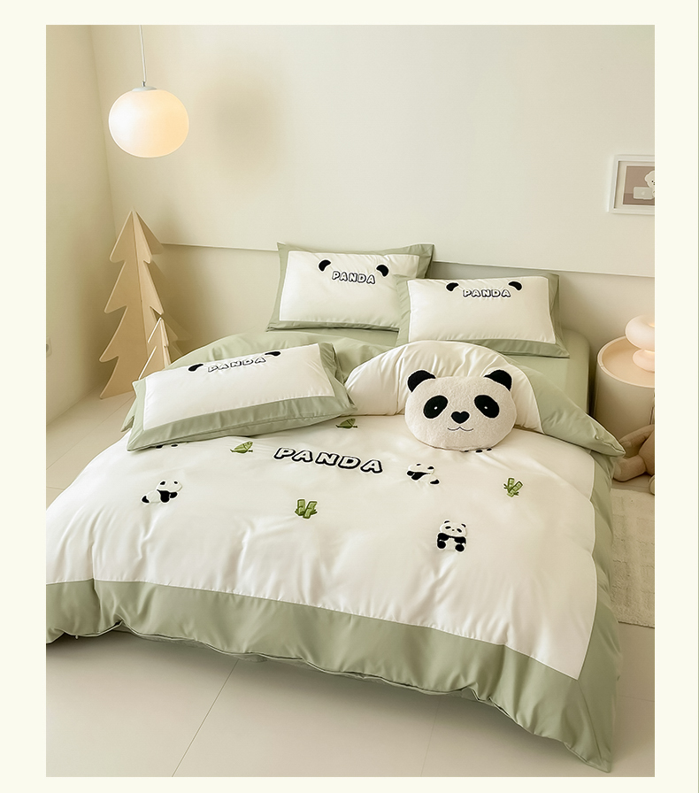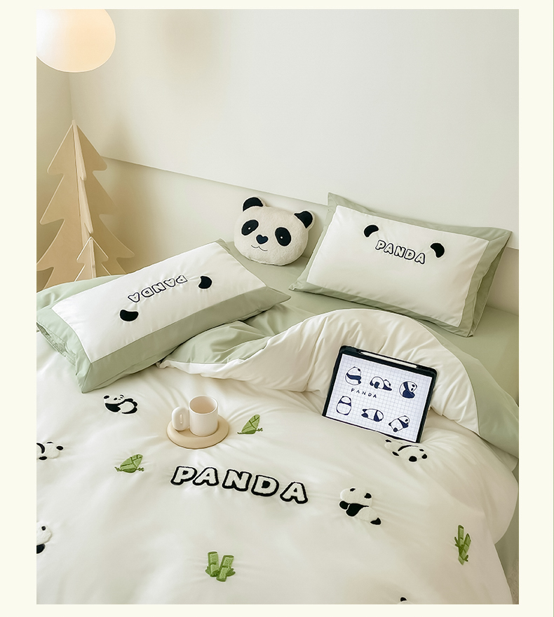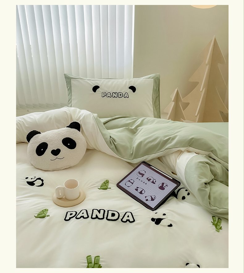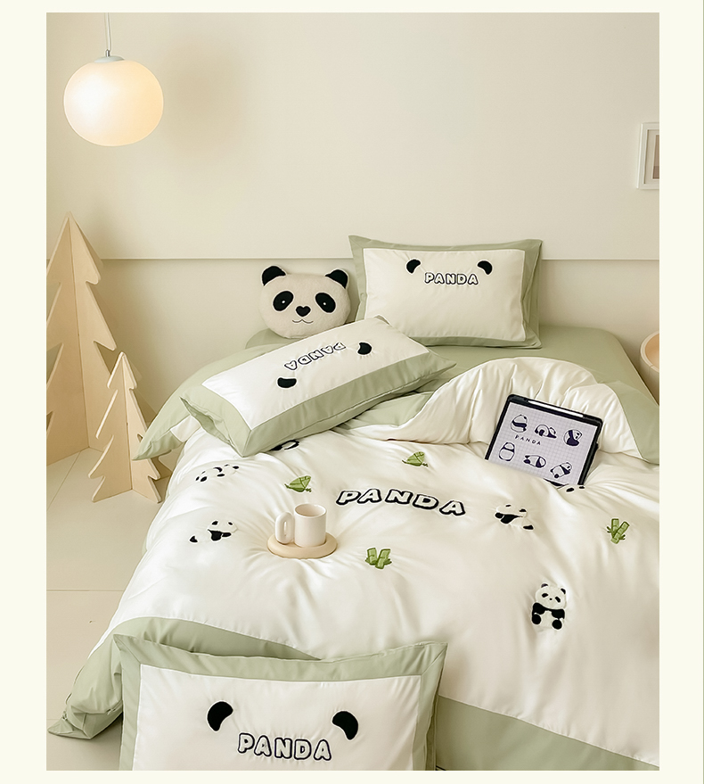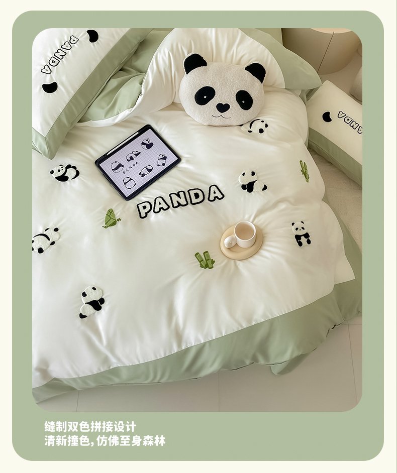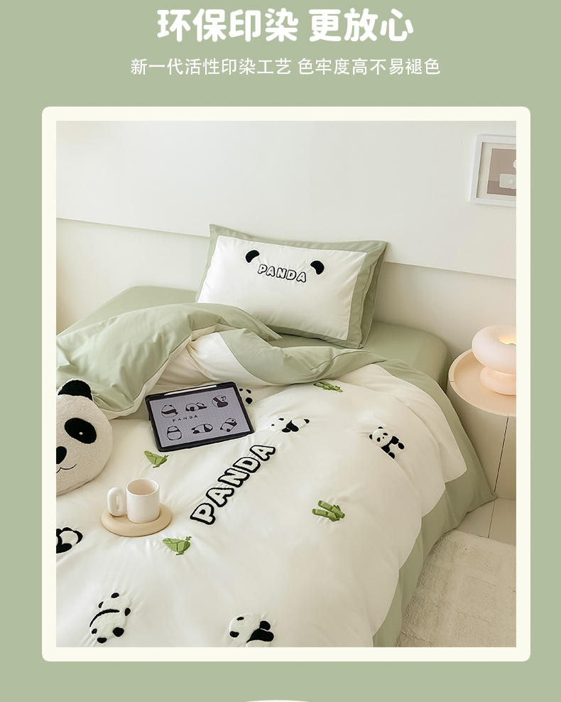 当前位置: 91家纺网 > 商品网购 > 床品套件 > 四件套 > 水洗棉四件套 > 我心家纺 2023新款水洗棉毛巾绣四件套-熊猫系列 竹林宝贝-白