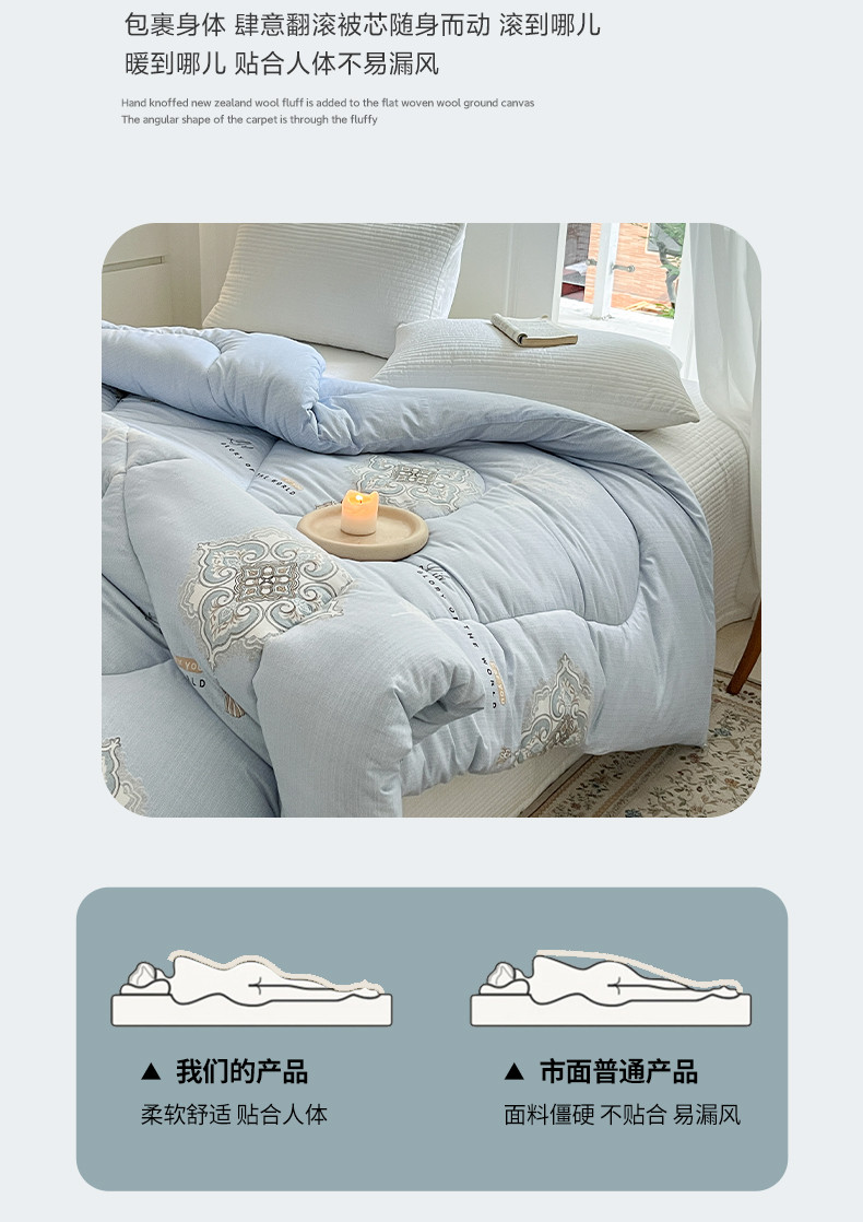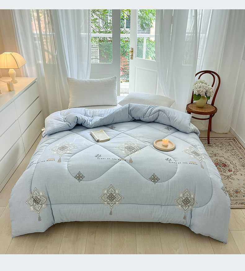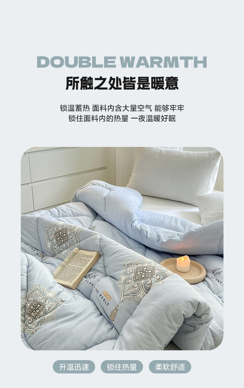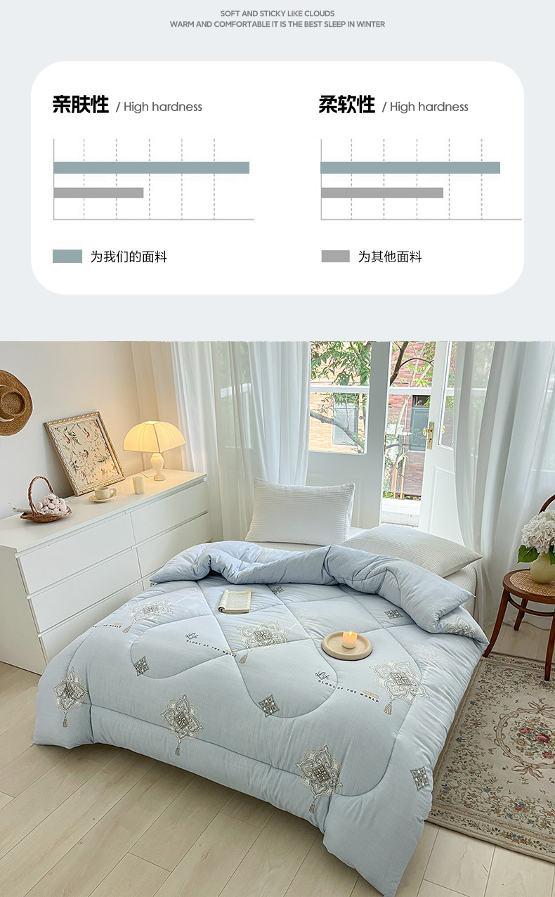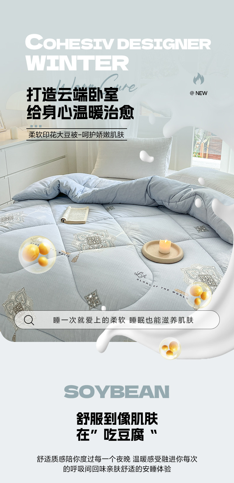• 91家纺网 家纺一手货源 找家纺 心悦 2023新款柔软印花大豆被 荣耀蓝