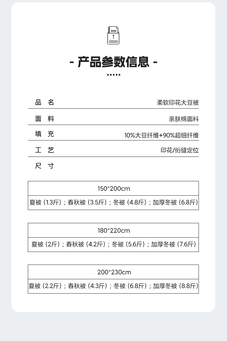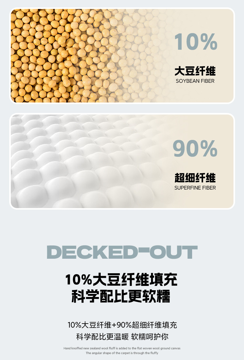 • 填充纤维种类: 大豆蛋白改性聚酯纤维