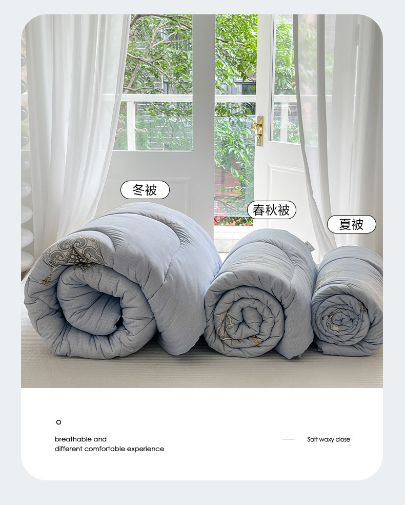 • 91家纺网 家纺一手货源 找家纺 (总)心悦家纺 2025新款A类全棉纯棉色织提花大豆被被子被芯,暖砂白,粉棉云,柔砂灰,组合图仅供展示