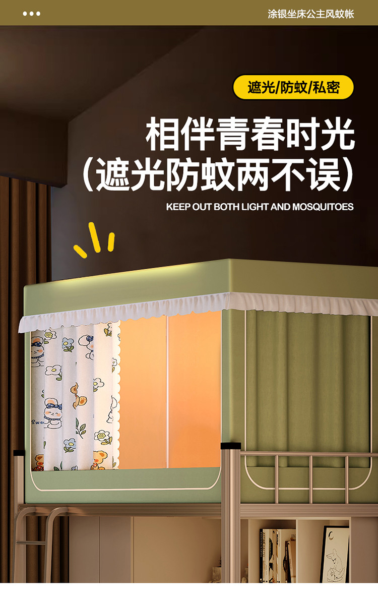 青竹苑 2023新款强遮光涂银公主风学生蚊帐 兔兔和熊熊