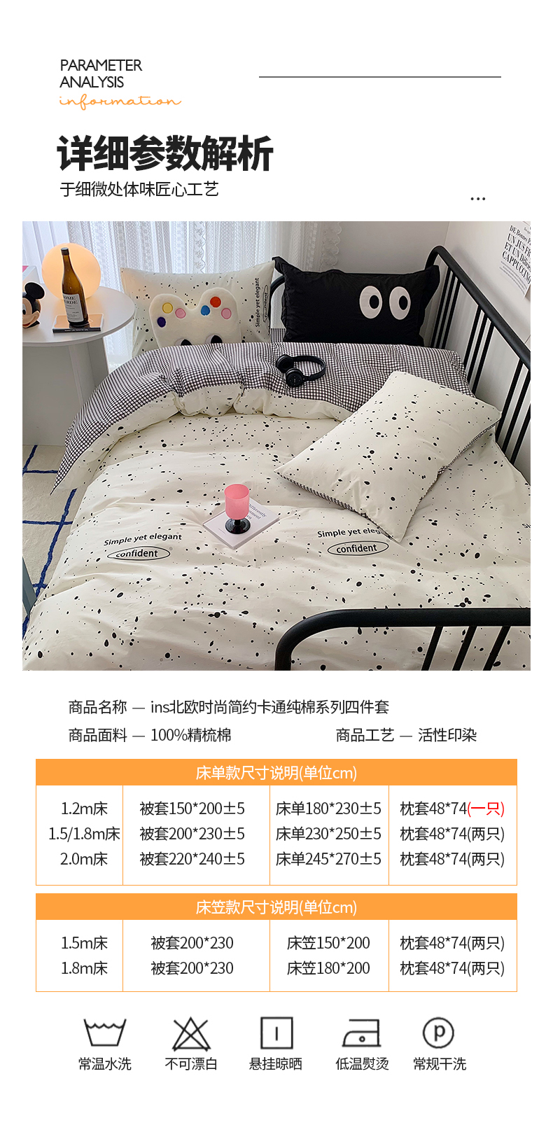商品名称:桃子家居 2023新款ins北欧时尚简约卡通纯棉四件套系列 棉-星辰