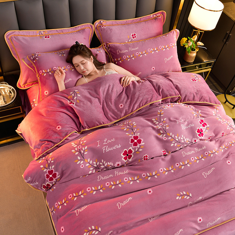 诺梵家纺 2025新款8斤加厚保暖金貂绒牛奶绒印花四件套 花枝如梦,花枝如梦