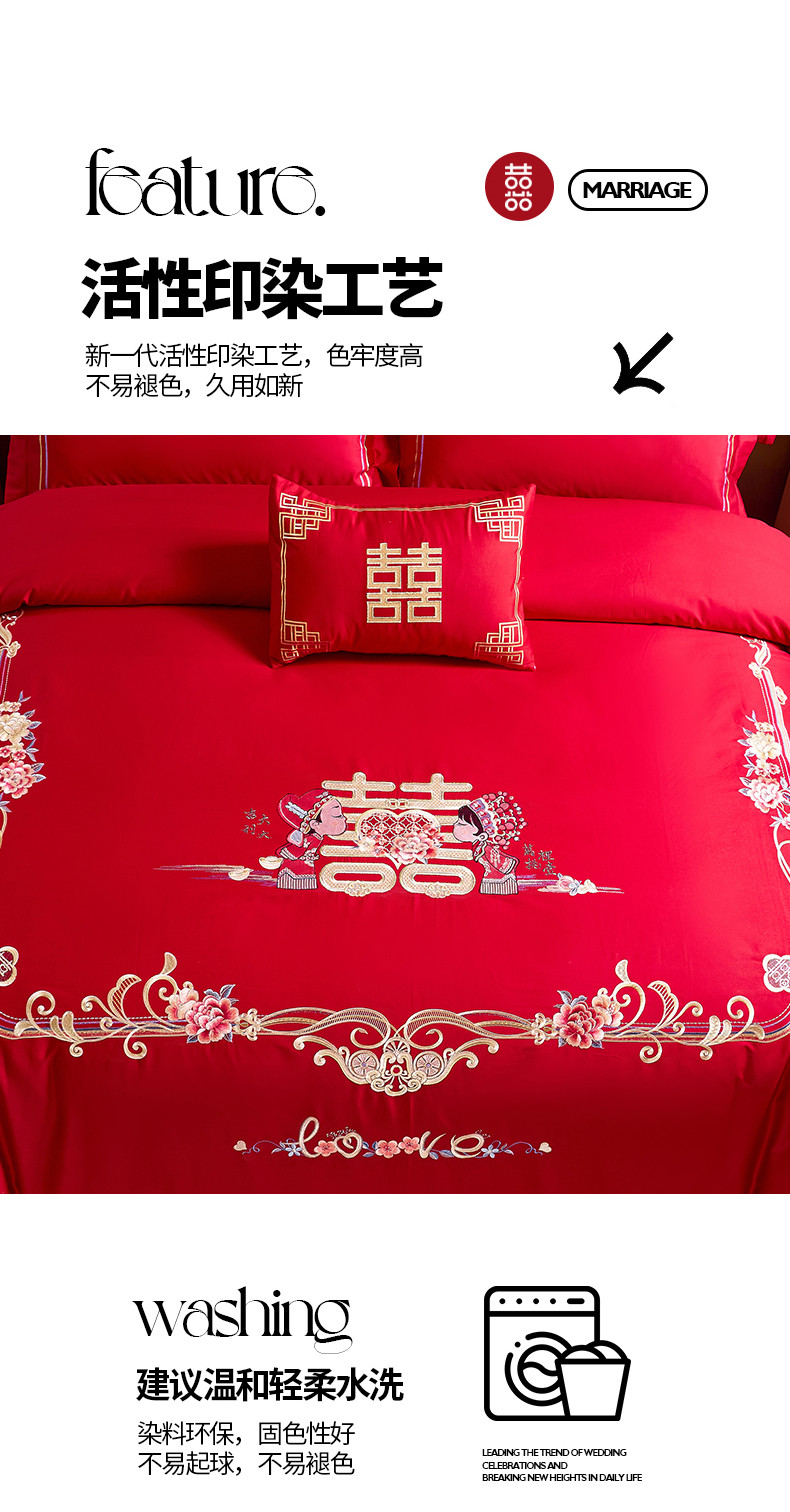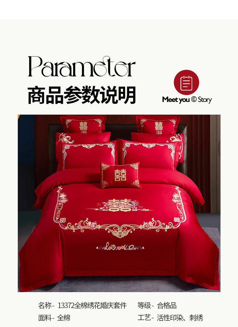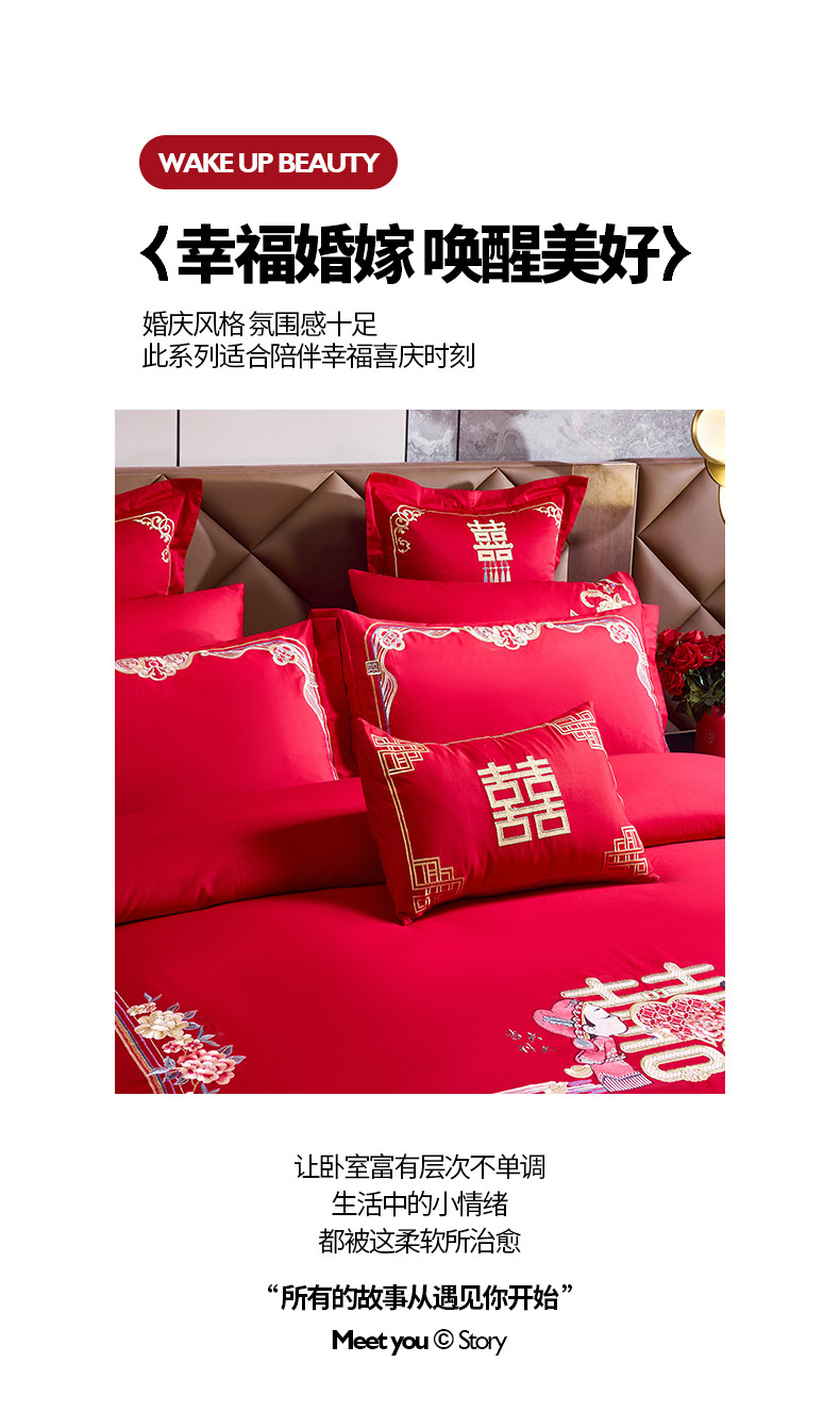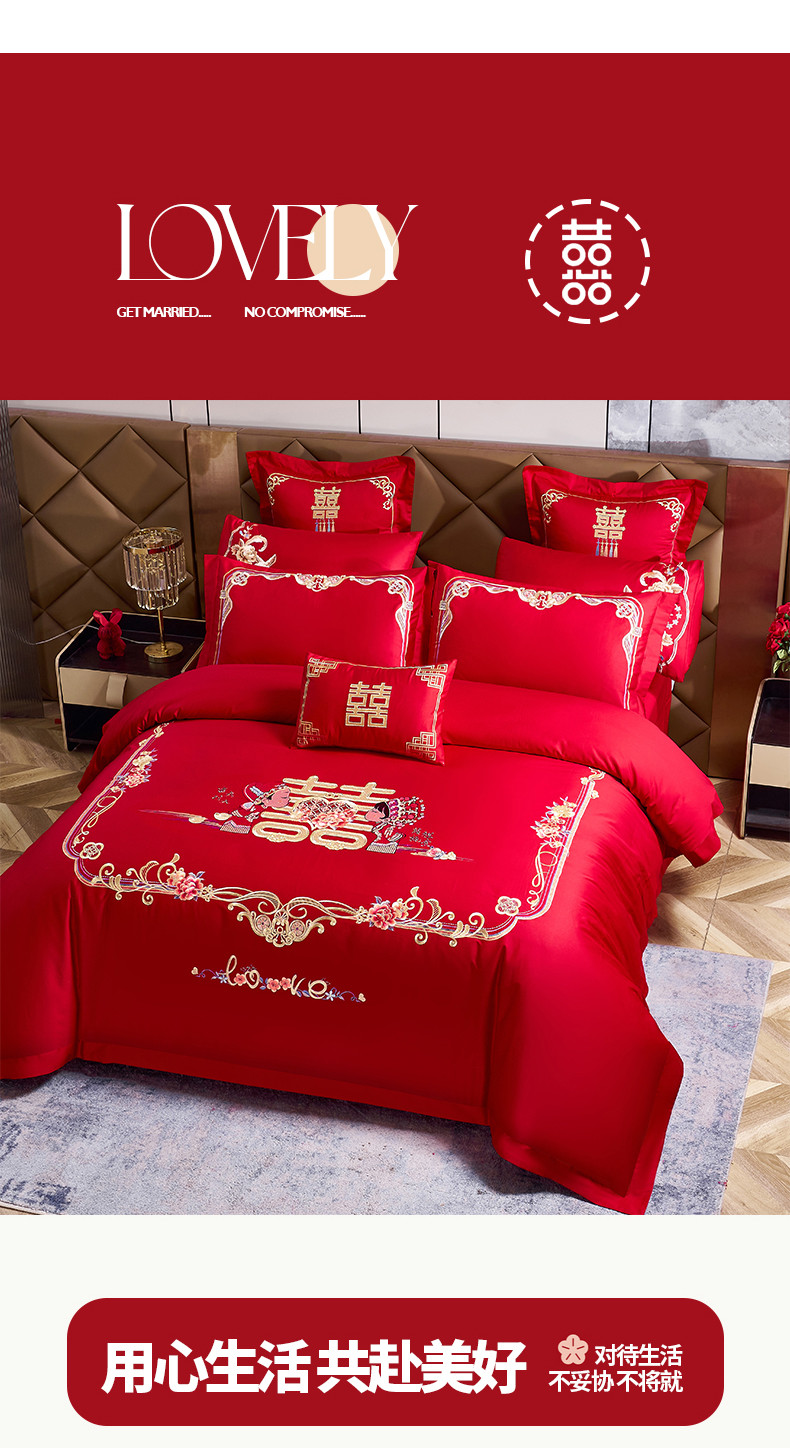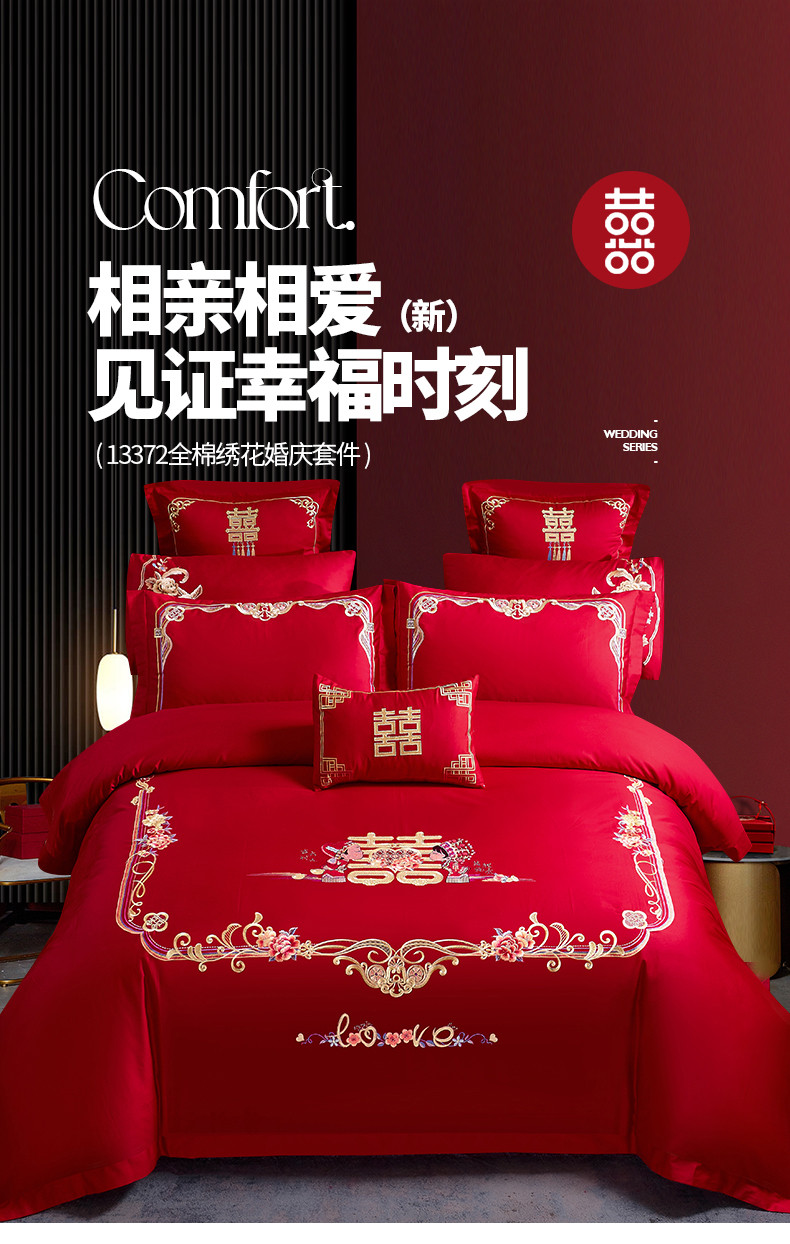 当前位置: 91家纺网 > 商品网购 > 床品套件 > 多件套 > 多件套 > 千禧 2023新款13372全棉跑量绣花婚庆套件多件套 相亲相爱