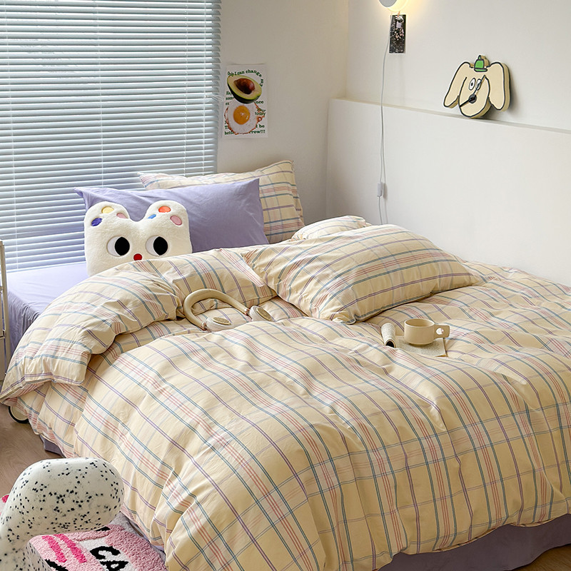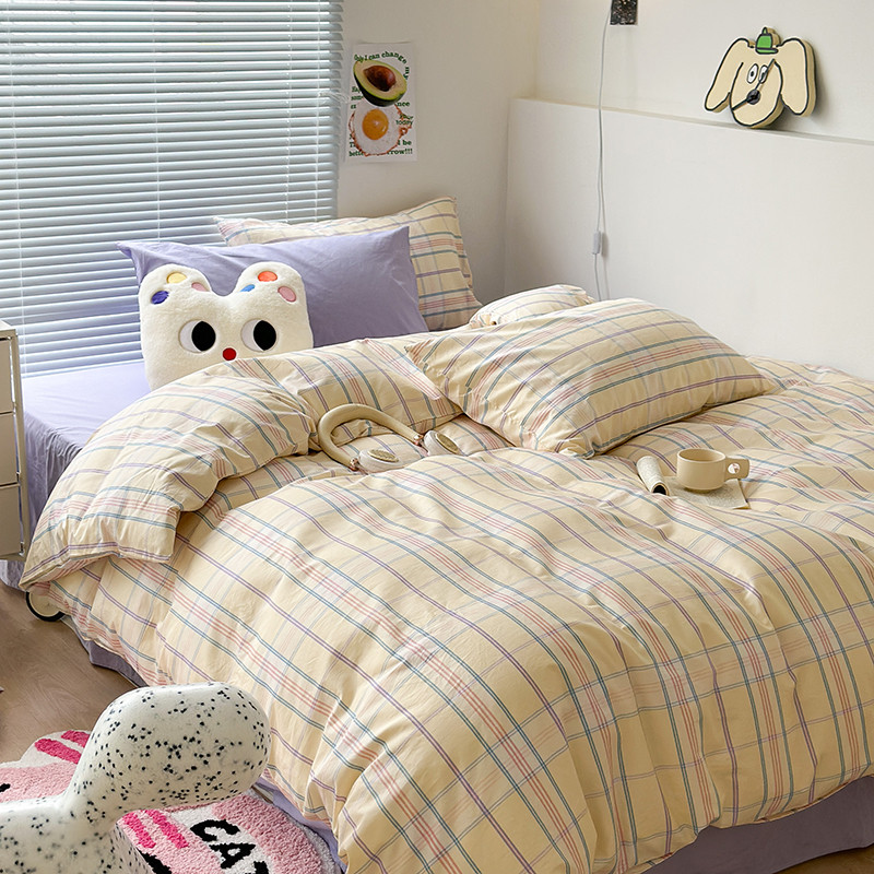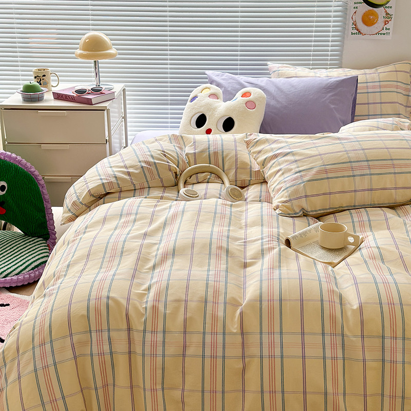 (总)昔可 2023新款全棉ins格子混搭系列四件套,ins简约绿格,粉蓝格,开心果格,学院格纹,粉绿格,海盐兰格,黄绿格,夏日蓝条,芝士黄条,紫芋泥芝士格