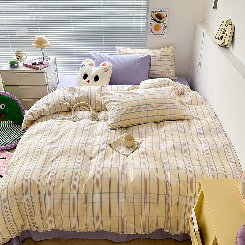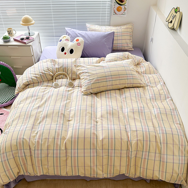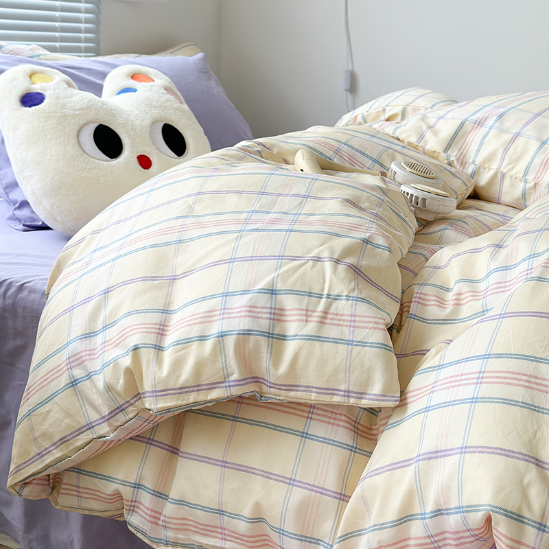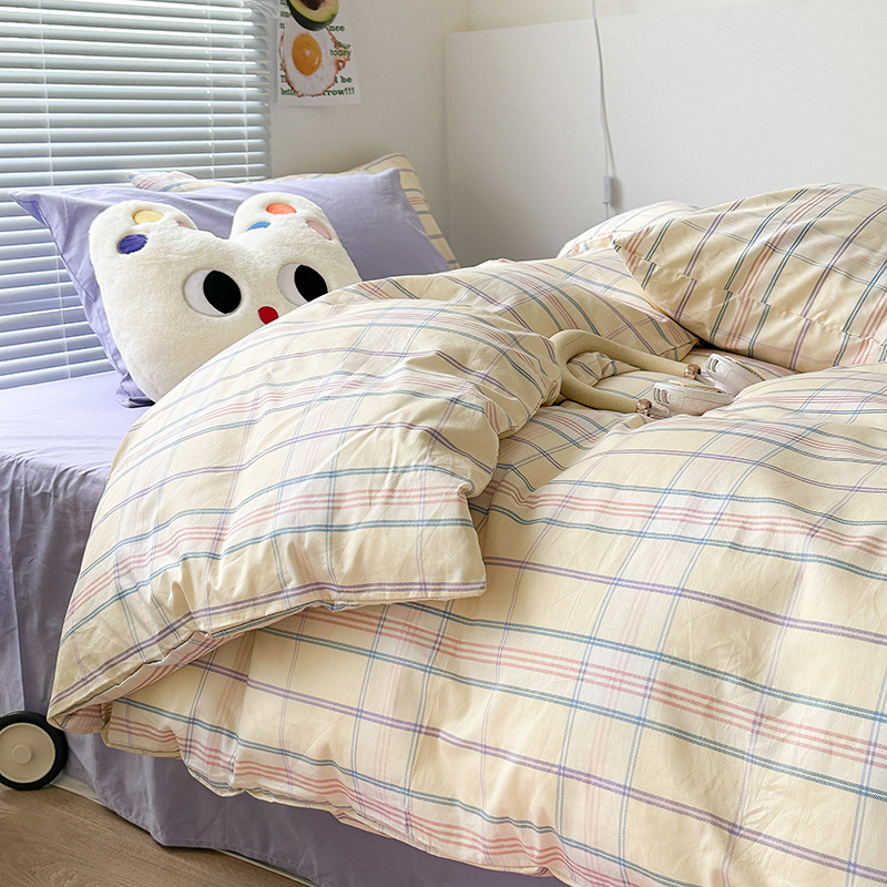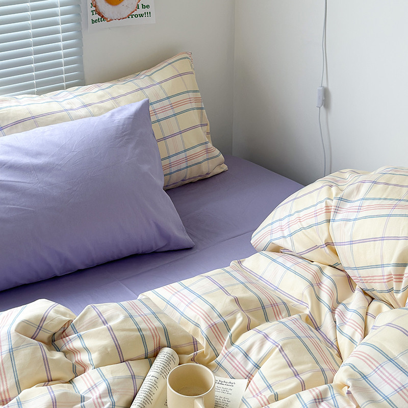 昔可 2023新款全棉ins格子混搭系列四件套紫芋泥芝士格