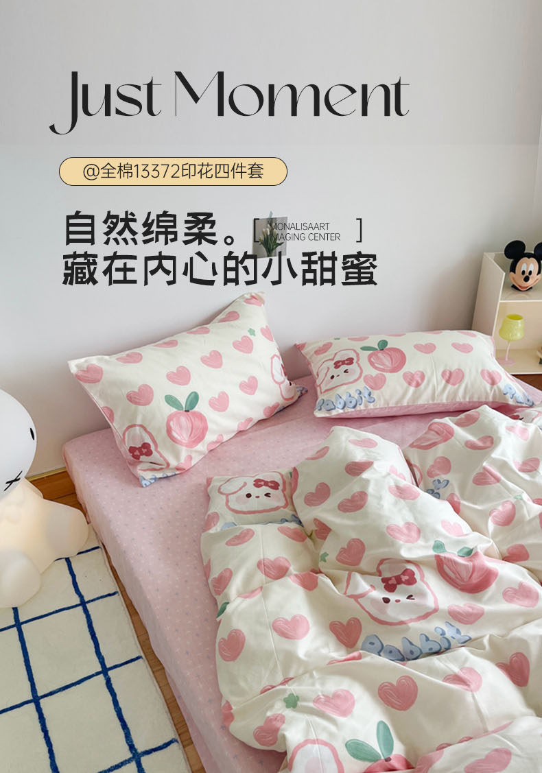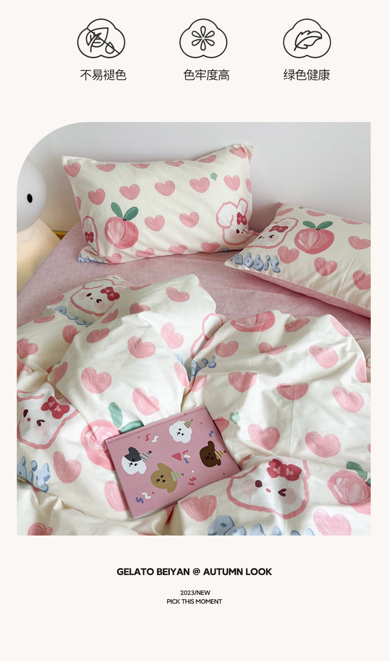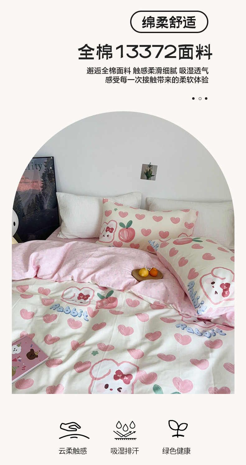 N先生 2023新款13372全棉印花四件套 桃心兔