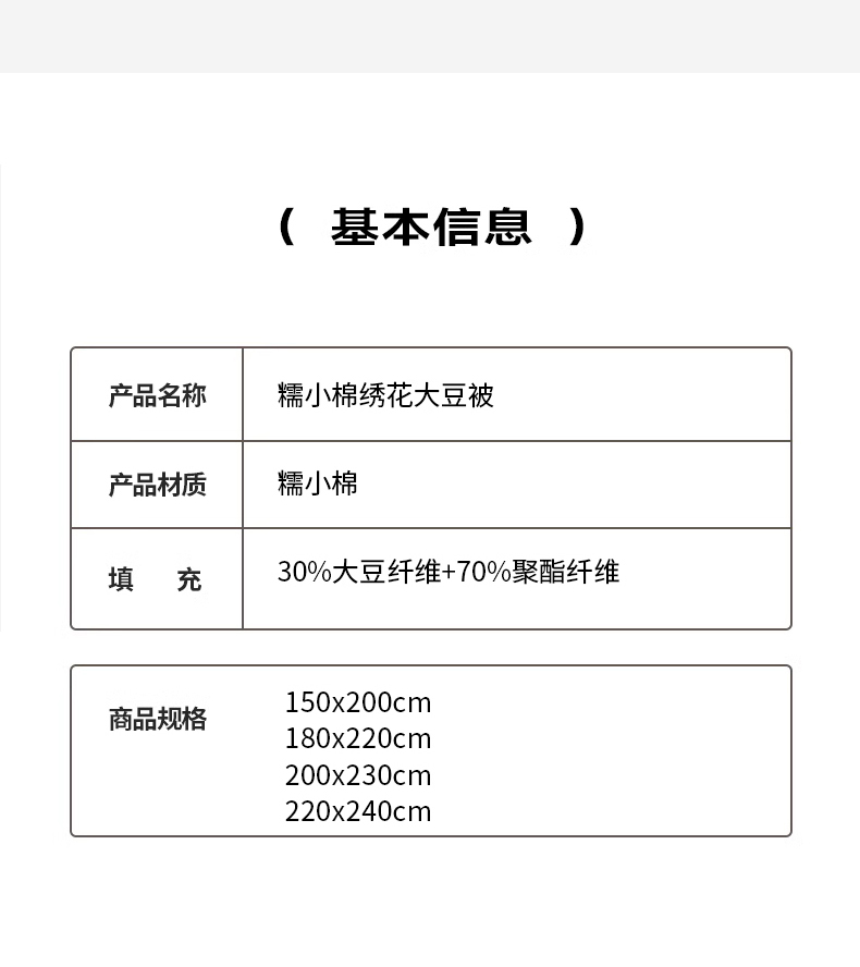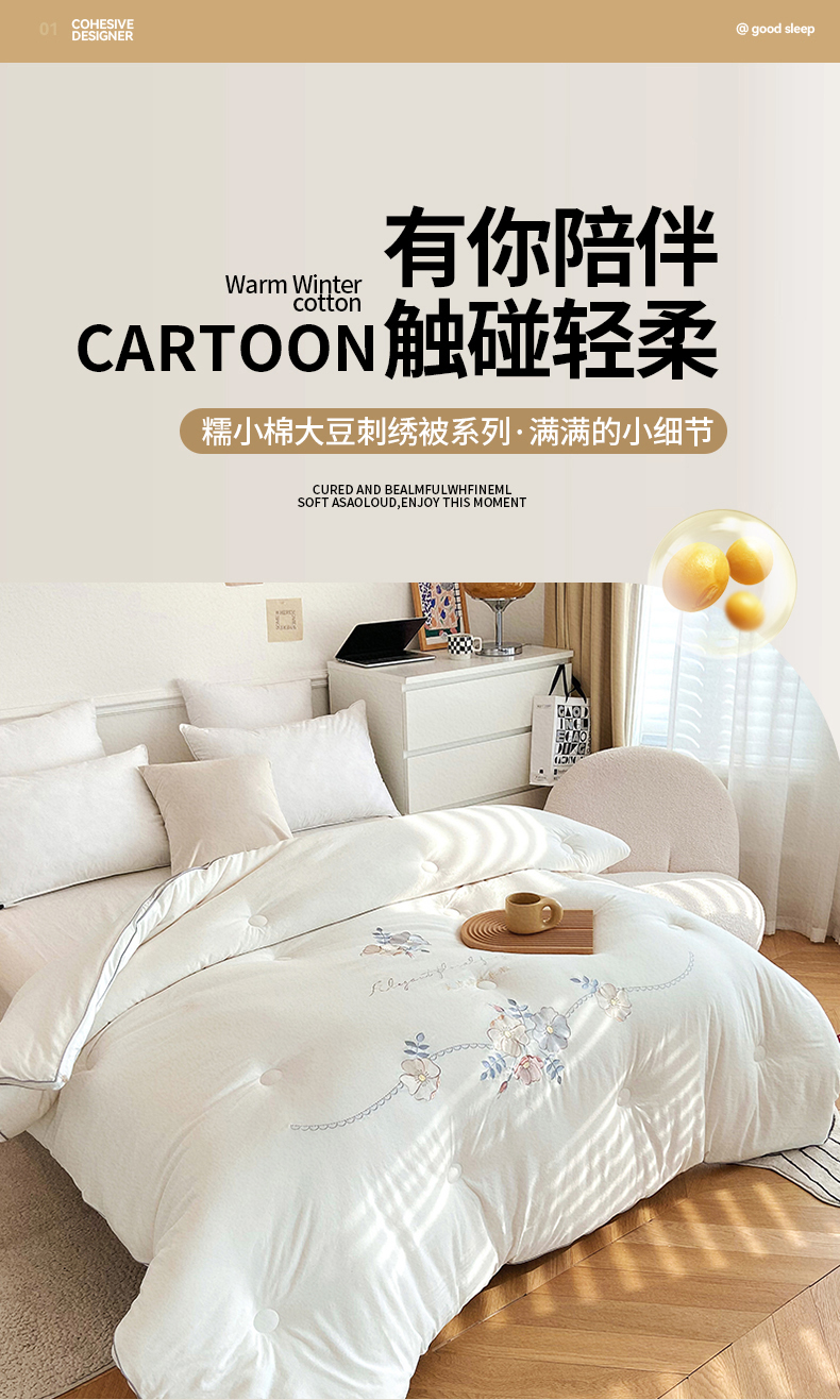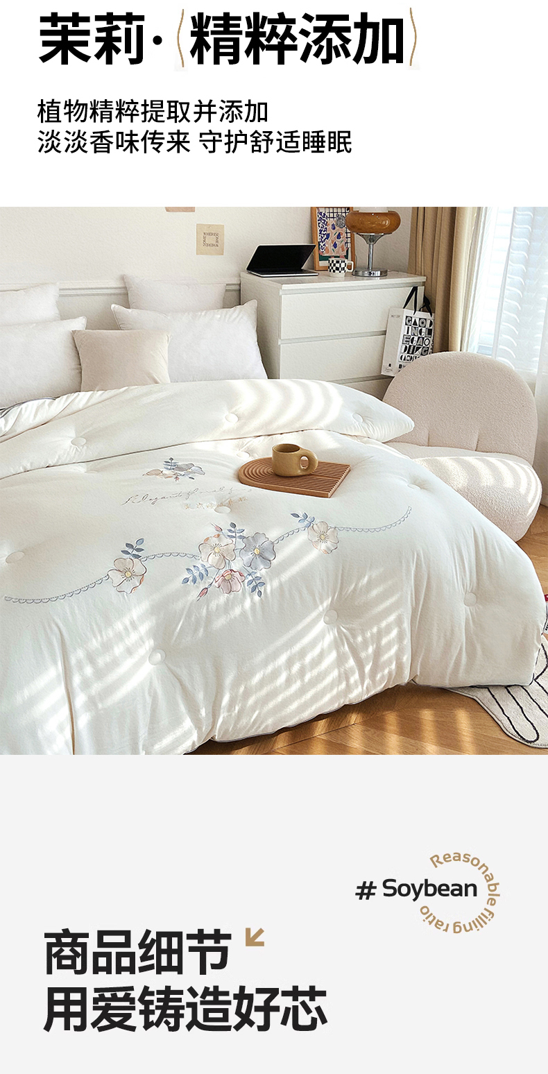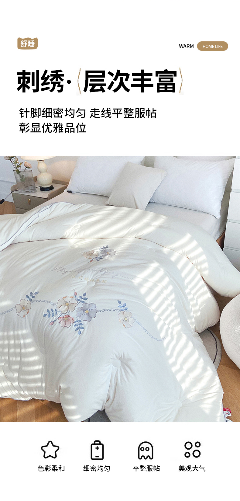商品名称:太阳羽 2023新款糯小棉绣花大豆被 白色