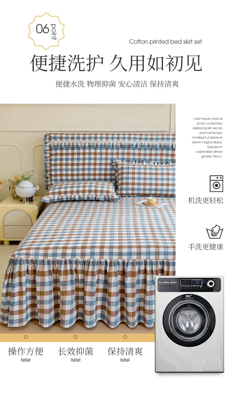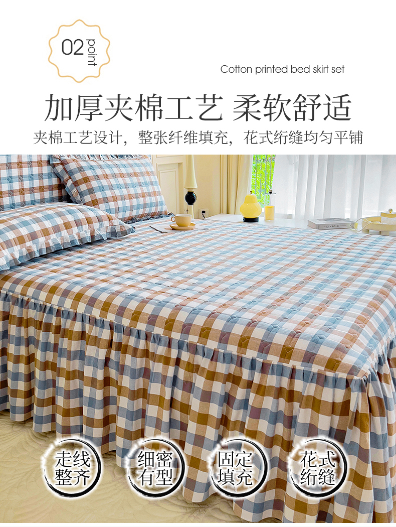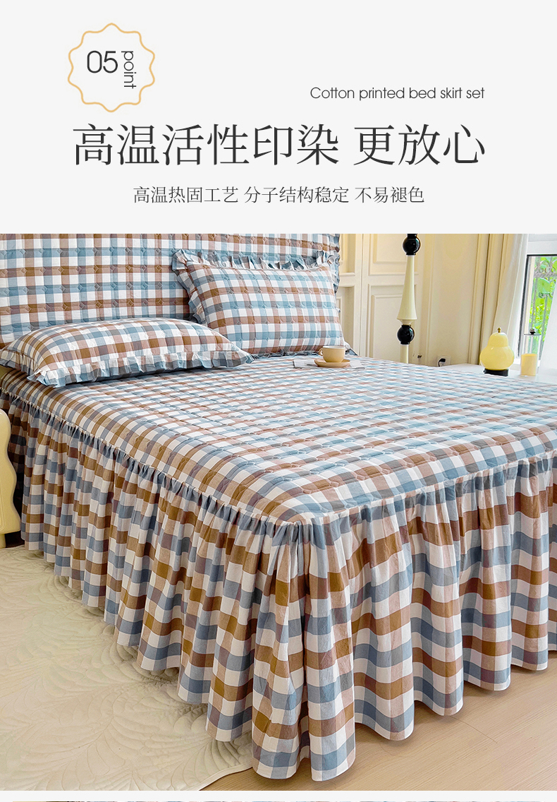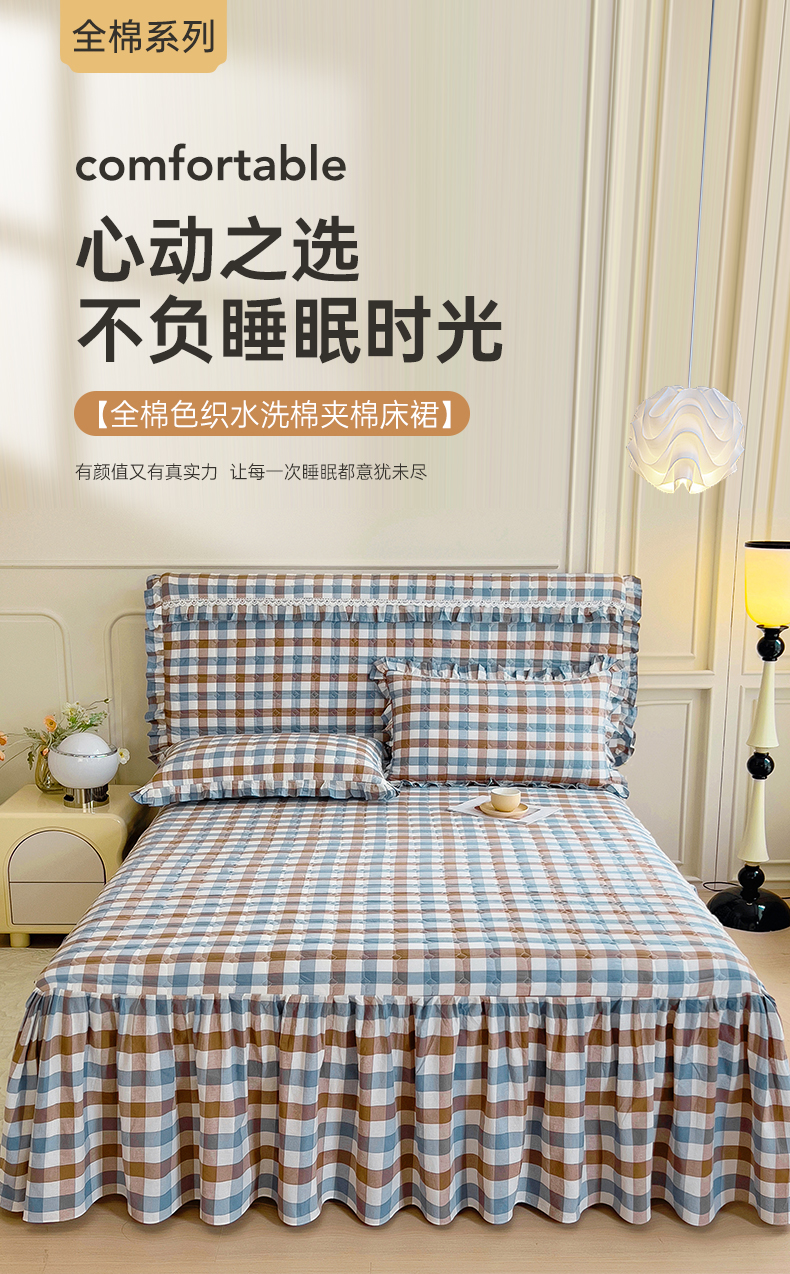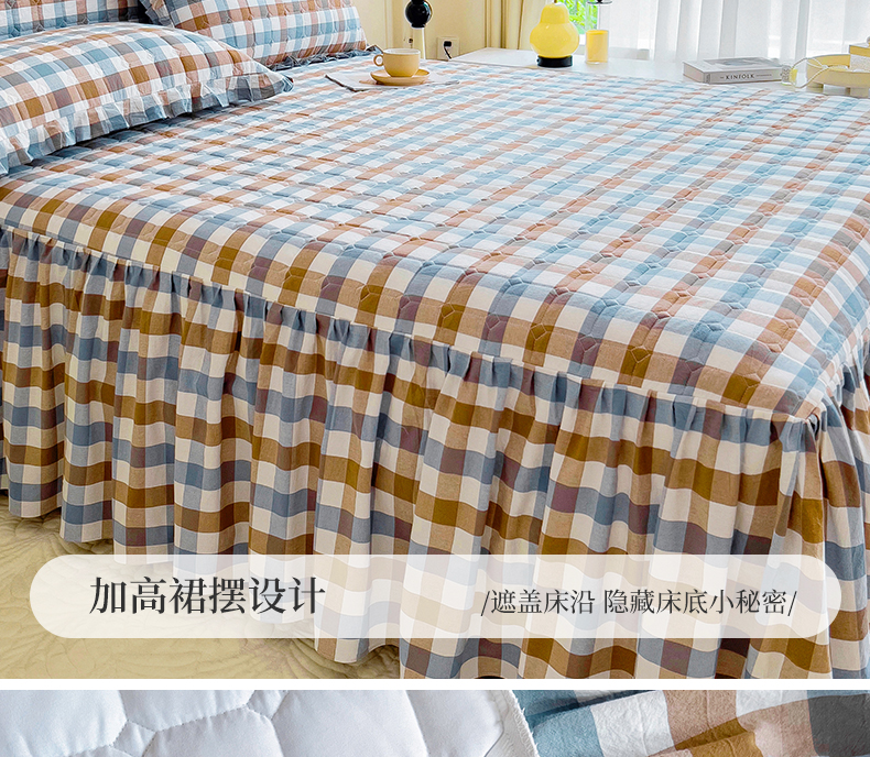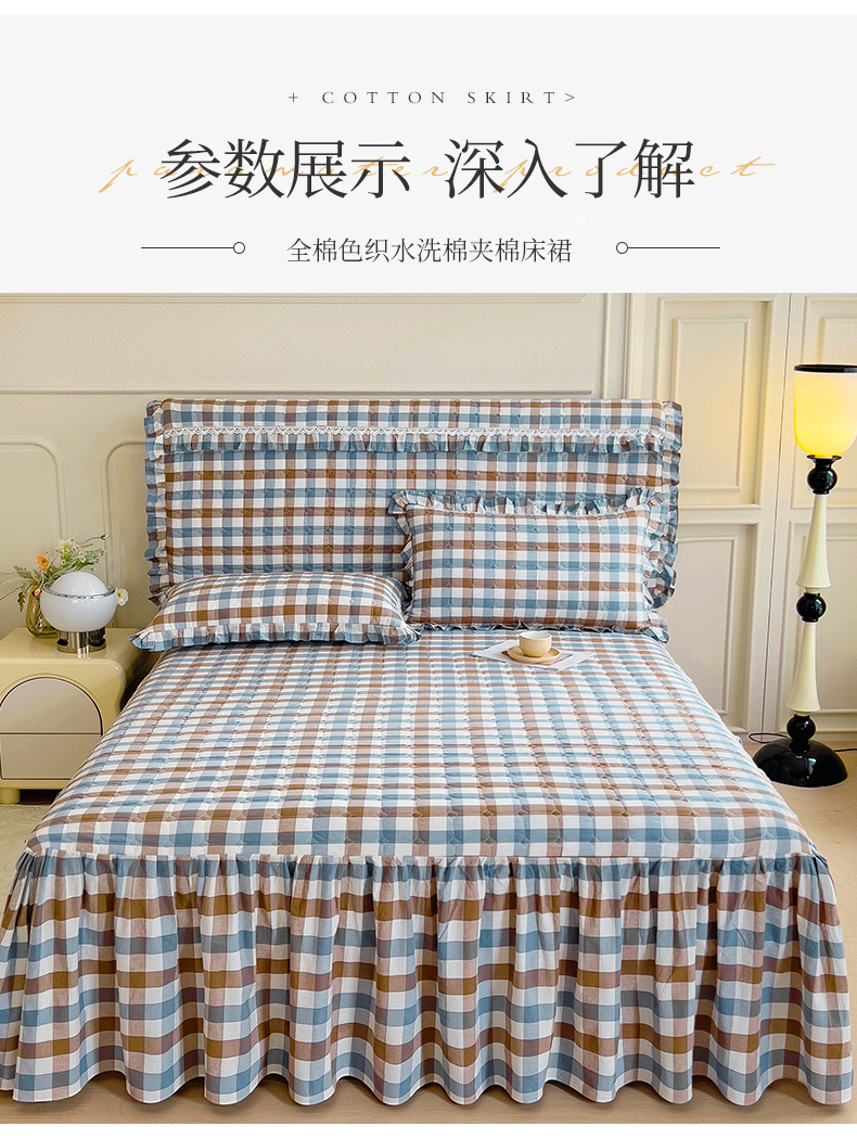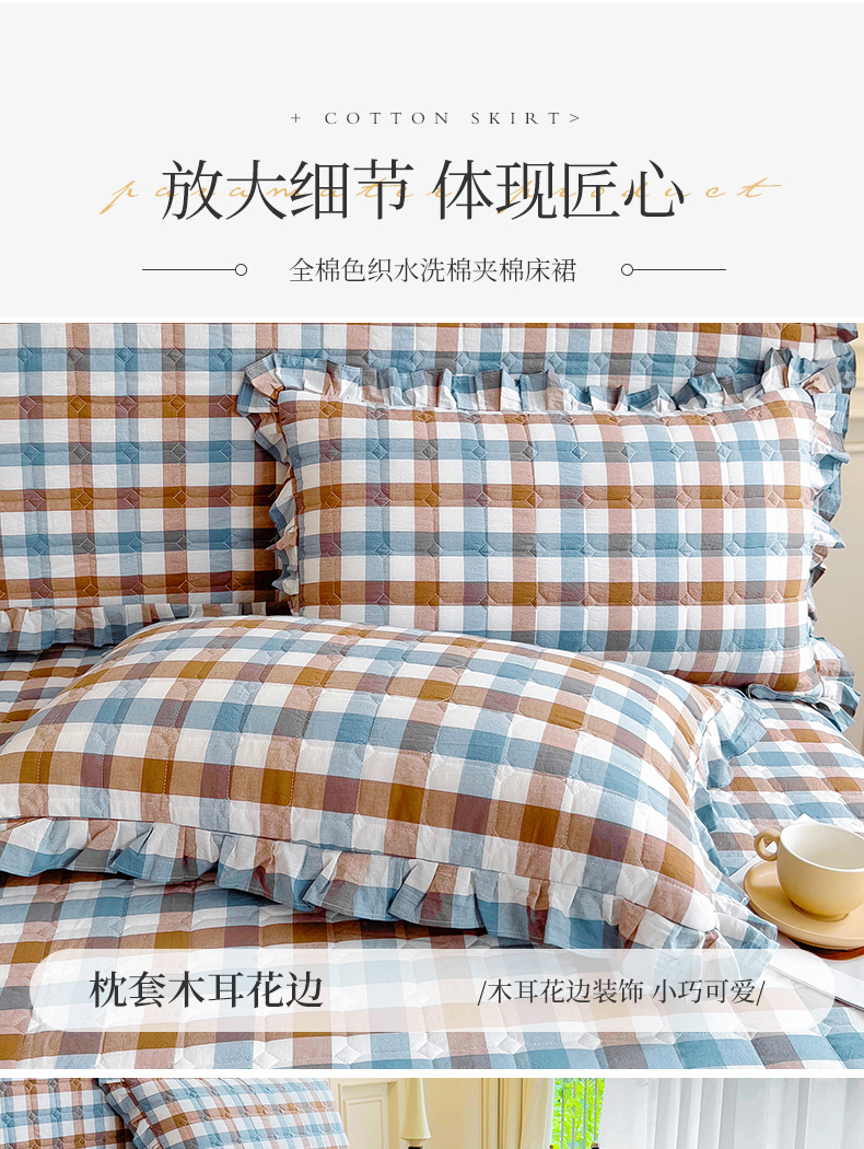 (总)十个点家纺 2025新款加厚磨毛木棉床裙三件套-格小格系列,格小格-粉,格小格-金驼,格小格-咖,格小格-兰,格小格-绿,格小格-玉