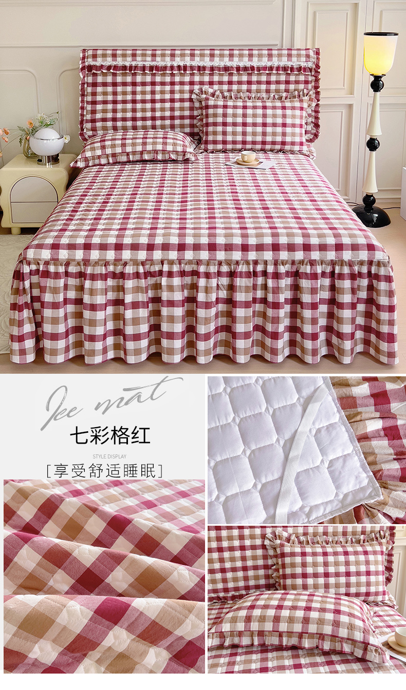 十个点 2024新款色织水洗棉-韵格系列单品夹棉床裙 七彩格兰